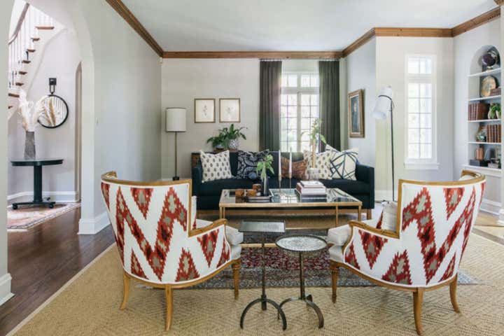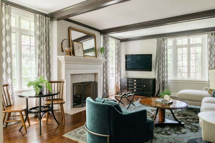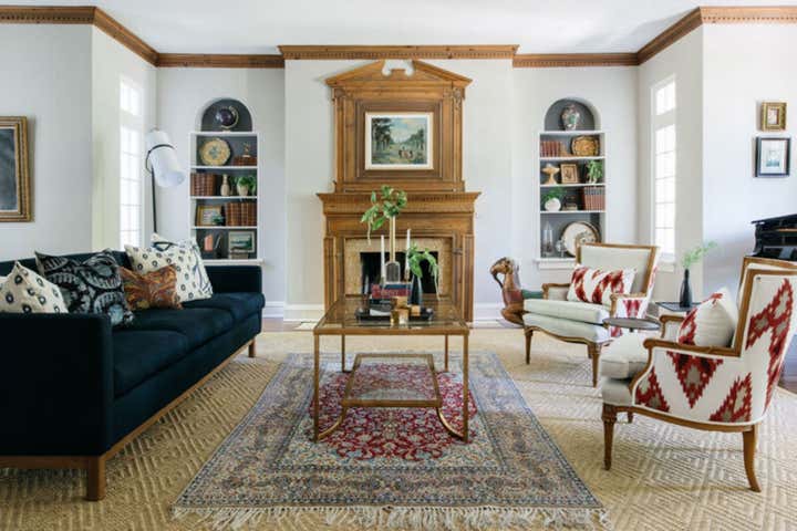 This house was built in 1899, the oldest on the block, and once the Rugby School for Boys. The goal was to blend the owner’s formal taste with comfortable functionality for a family with three small children. The result is a space that combines color and pattern and just the right amount of modern while paying homage to the home’s history. We incorporated new designs, family heirlooms, antiques and refinished furniture to create a space that looks collected over time, rather than furnished from scratch over the course of a year.