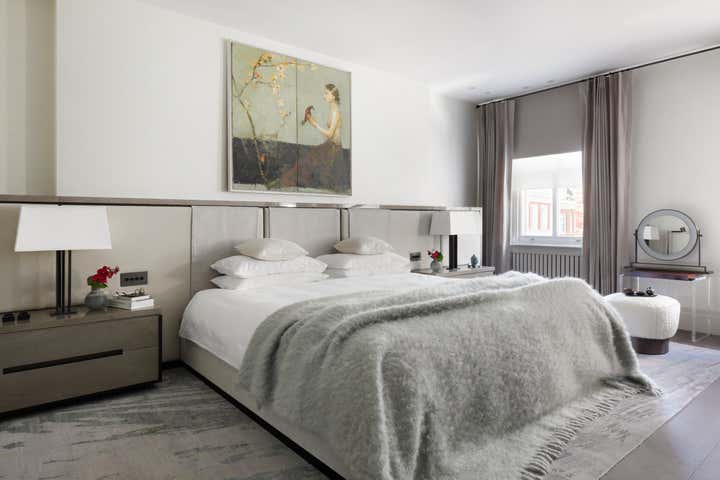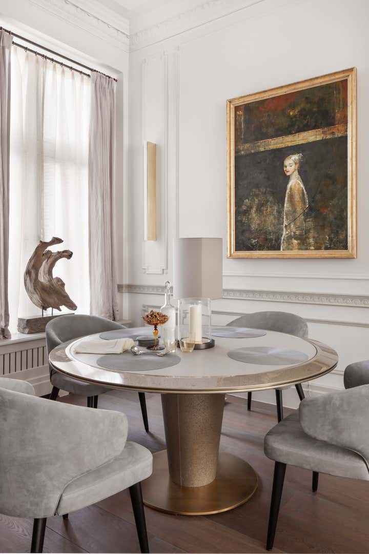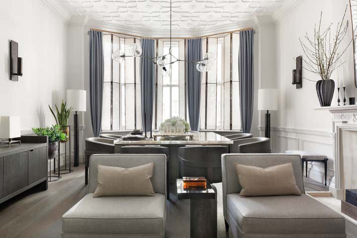 A masterful reinterpretation of a significant Kensington house. These large scale rooms lend themselves to showcasing some of the best one-off designed furniture pieces by Janine Stone. The five metre credenza, oversized sofas and the beauty of the diaphanous curtain treatments in the drawing room create a romantic Parisian town house feel for the space and met the client’s brief perfectly.