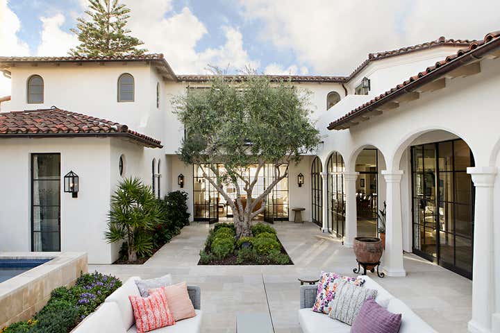 This mediterranean home is right on the beach in Southern California. This is a family retreat. Clean lines and modern comfort is the driving force