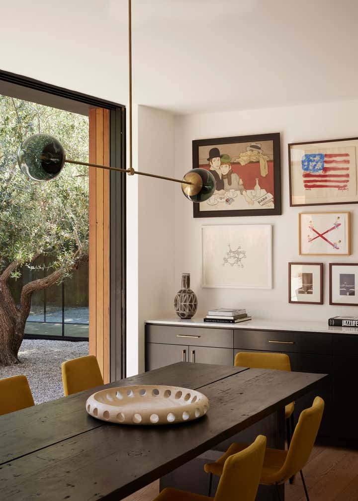 Outside, a 40-foot pool and multiple entertaining areas enhance outdoor living, while the charcoal panels and Western Red Cedar provide a neutral backdrop that complements California-native landscaping.