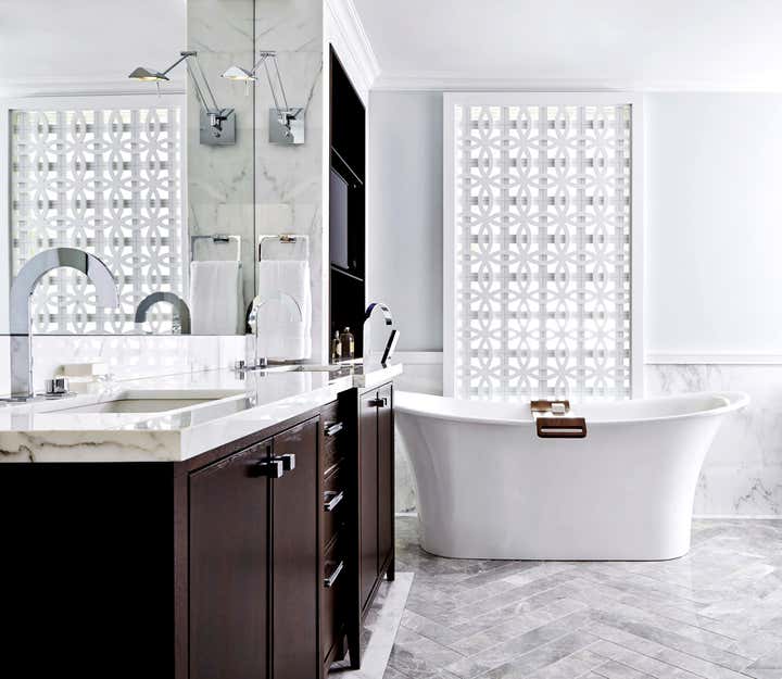 This bathroom is one of the best before and after projects we’ve done. It was like it belonged to a different house that no one had lived in since the 80’s. Our clients longed for a luxury spa retreat with lots of storage. What they had was a cramped mess of cracked, discoloured, and mouldy finishes. Everything had to go and we started from scratch. We rearranged the floor plan for better function and flow, designed new millwork, a curbless shower, and a custom-cut marble floor. Everything in this bathroom was designed with luxury in mind, right down to the heated bench seat in the shower.