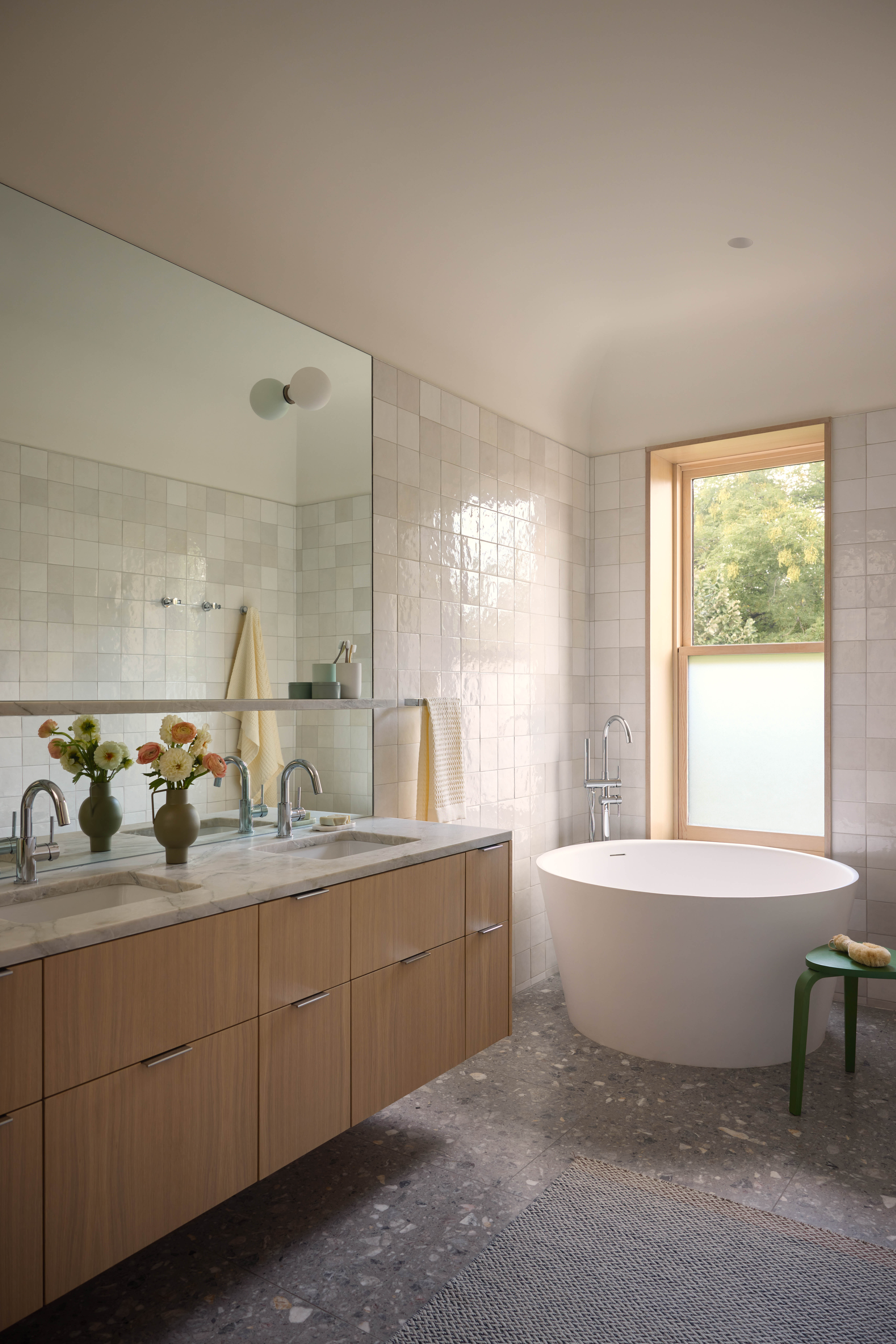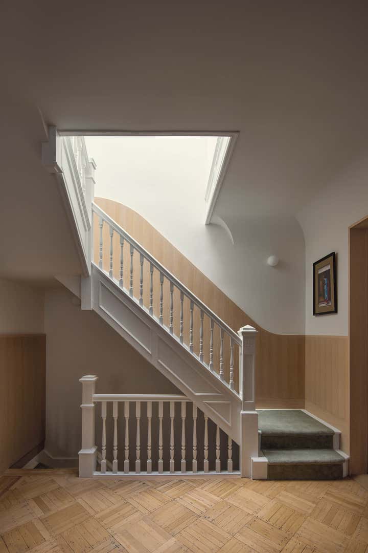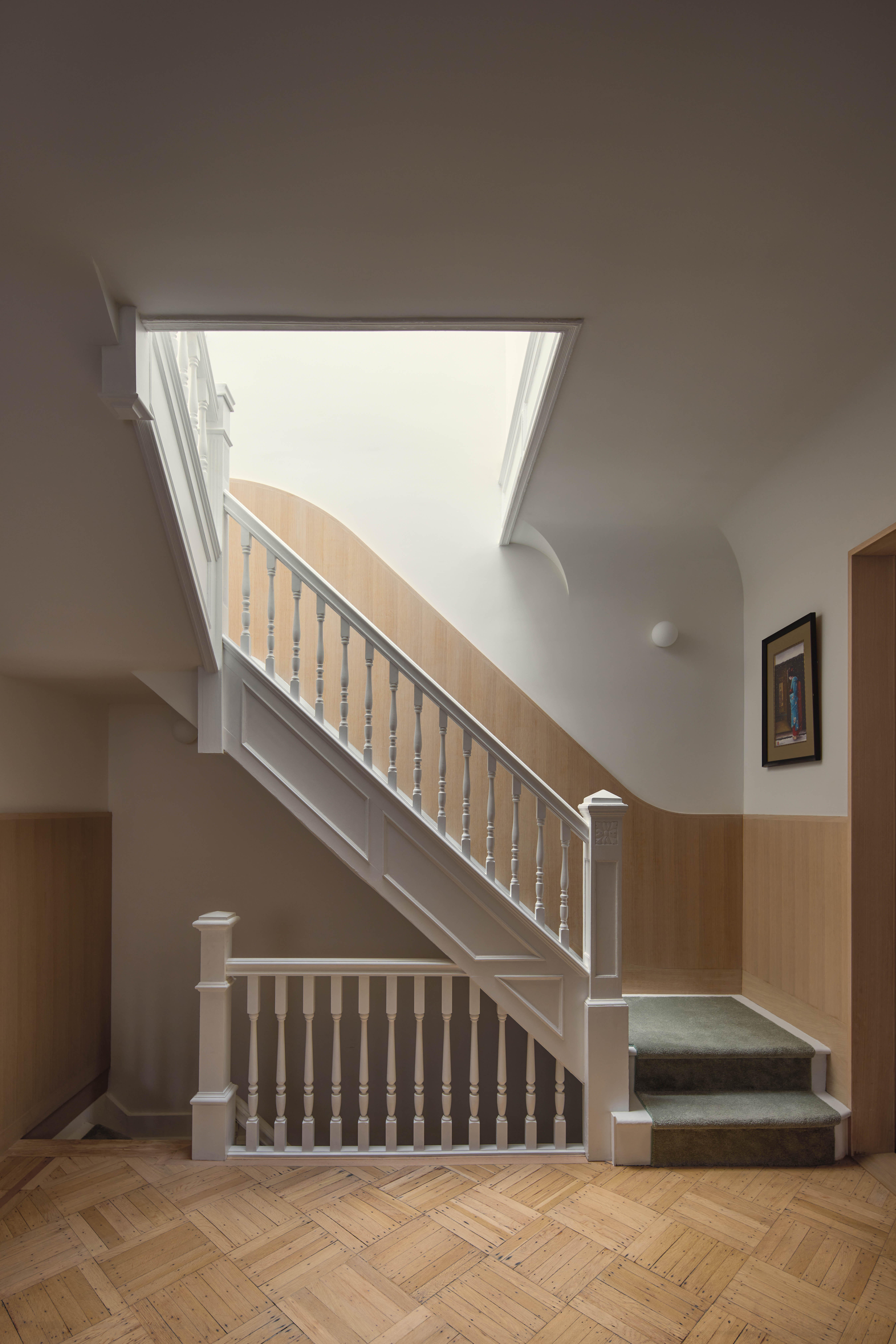 In Brooklyn’s Prospect Lefferts Gardens Historic District, ABA reinvented a landmarked corner house for a young family, transforming dark, divided interiors into bright, fluid spaces. White oak paneling, luminous plaster, and crafted ceiling curves unify the home from entry to skylit stair hall, culminating in serene bedrooms and Japanese-inspired baths. A comprehensive energy retrofit—including full electrification, solar panels, and daylighting strategies—pairs sustainability with a refined, pared-back architectural language.