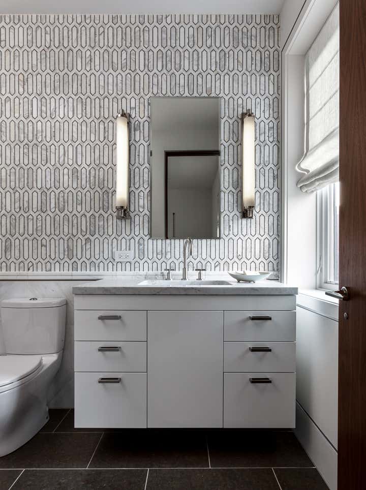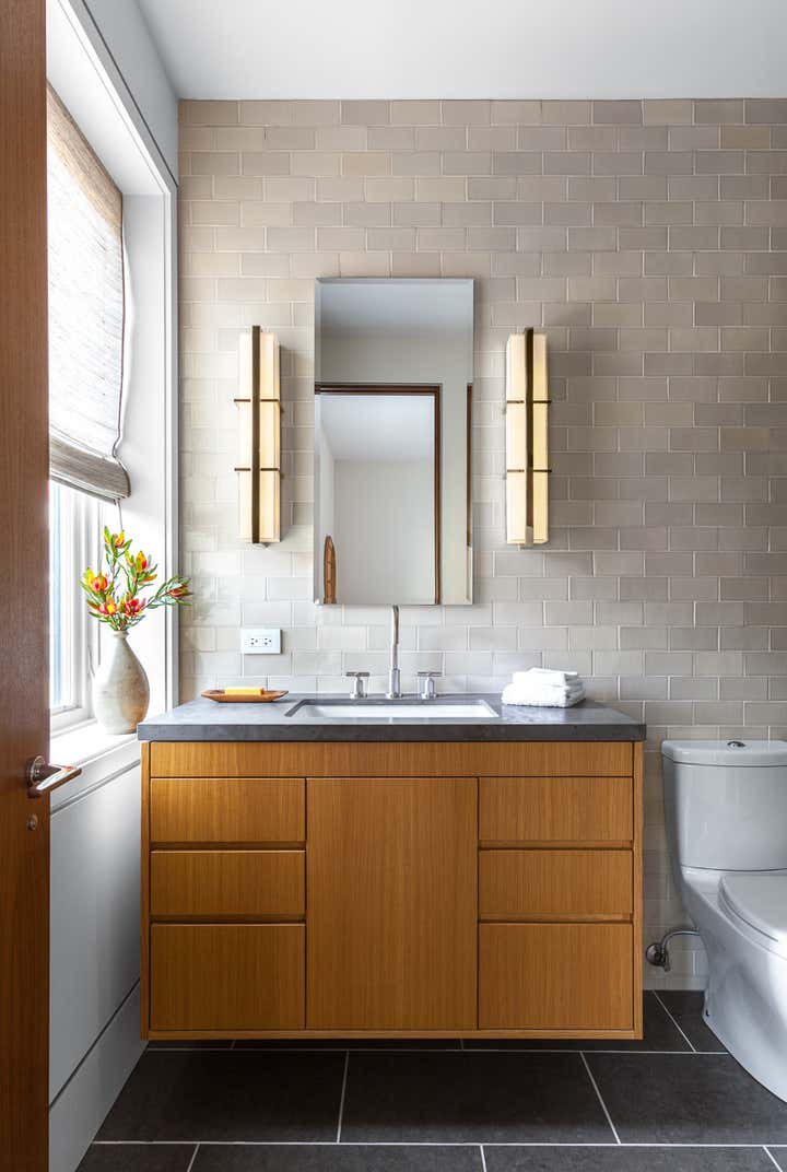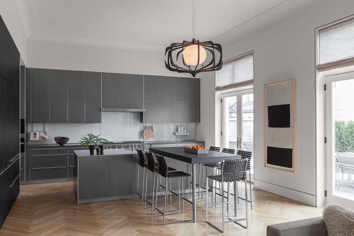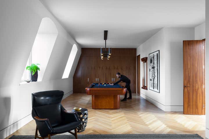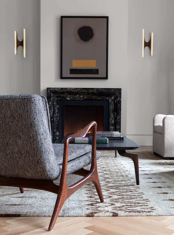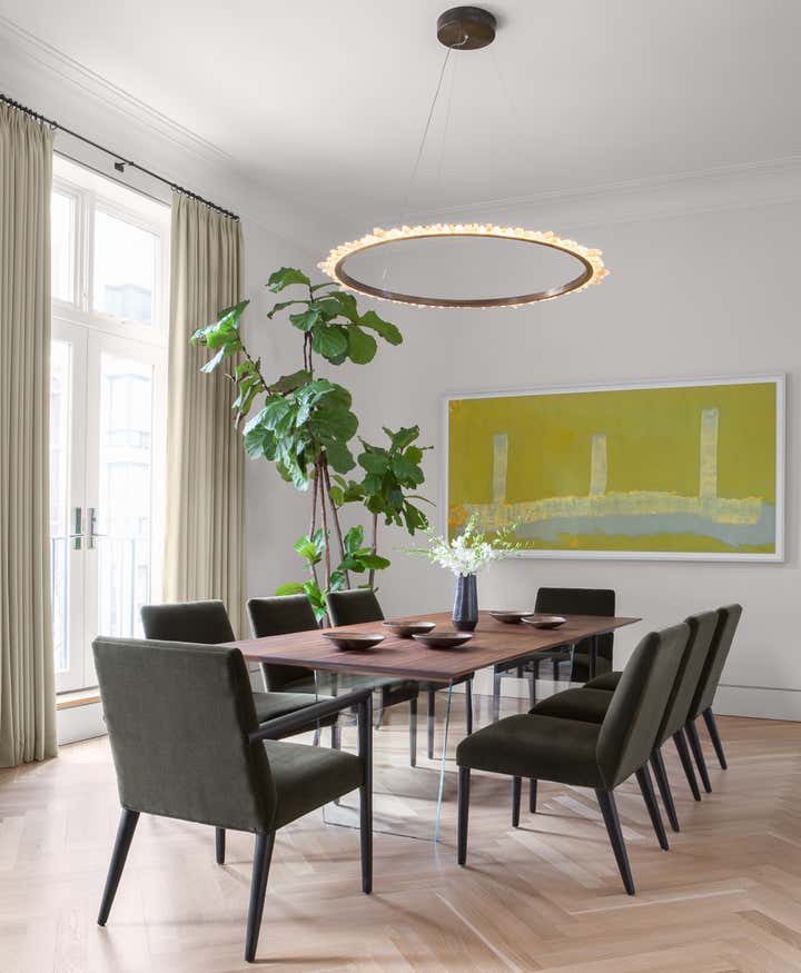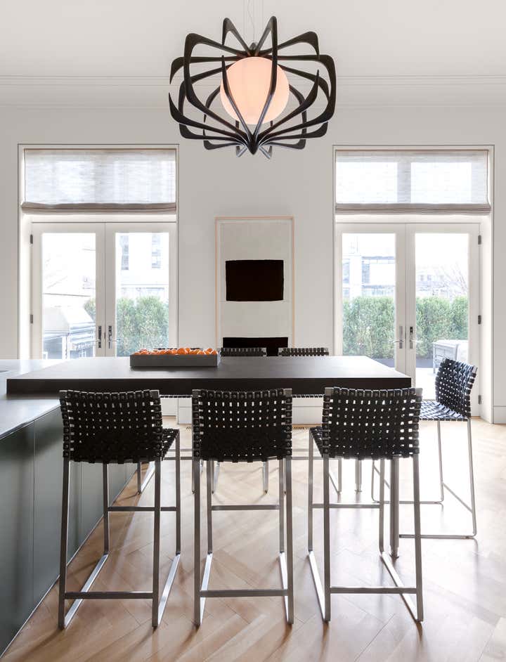 Chic and tailored, this new construction home in Chicago for a large family possesses an understated and subtle drama. Luxurious materials— sculpted bronze, walnut floors and plaster moldings are woven throughout the home. A sense of elegance reverberates throughout the mid-century modern stylings and impressive modern art collection.