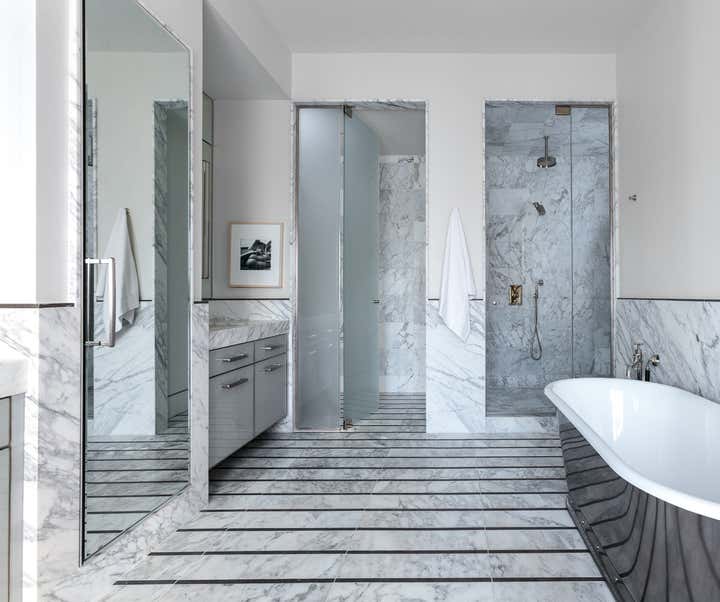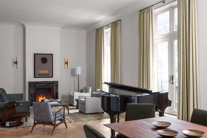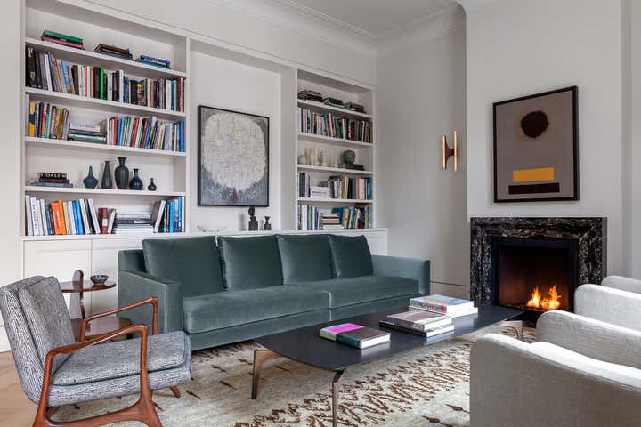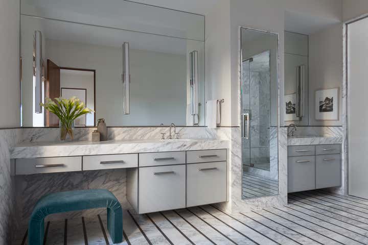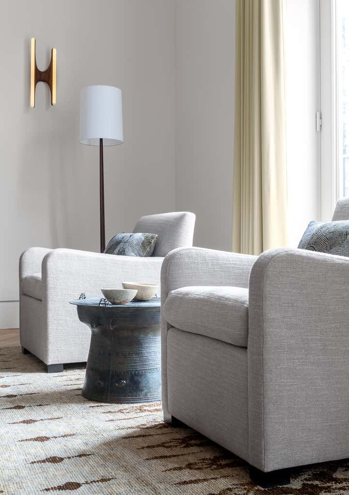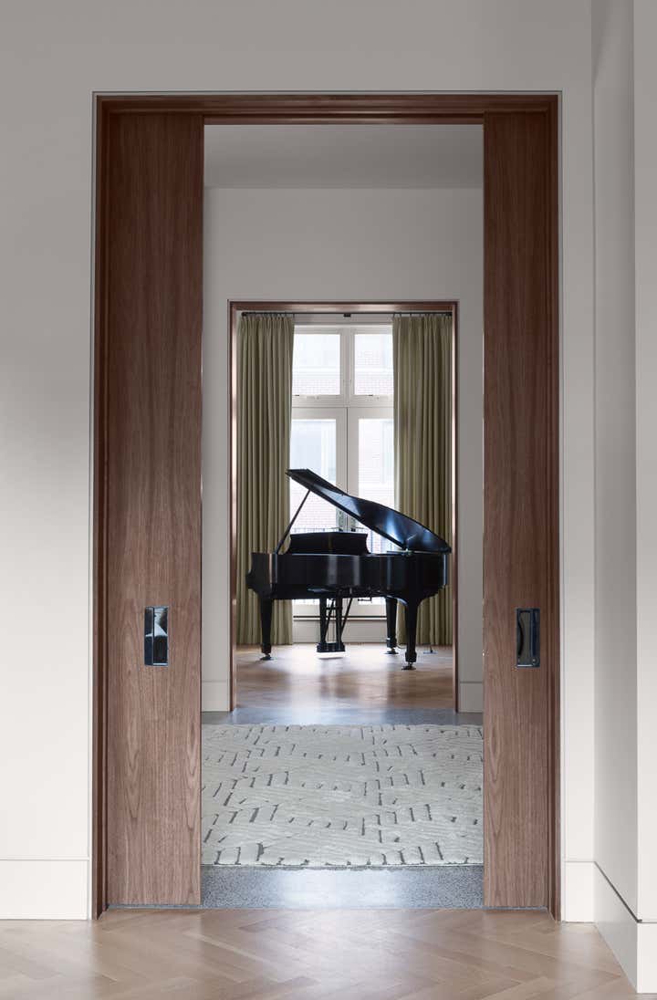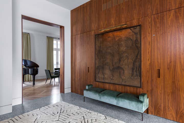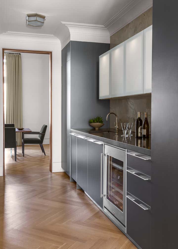 Chic and tailored, this new construction home in Chicago for a large family possesses an understated and subtle drama. Luxurious materials— sculpted bronze, walnut floors and plaster moldings are woven throughout the home. A sense of elegance reverberates throughout the mid-century modern stylings and impressive modern art collection.