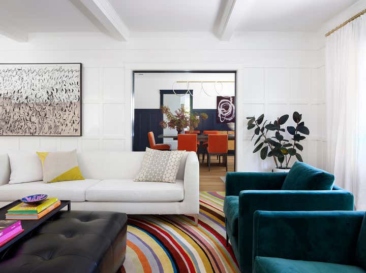 This was our third collaboration with this growing family. What was supposed to be an 8-month renovation project, thanks to the pandemic and major additions to the scope turned into a 2-year full remodel of every room in the house! While we stuck to white walls we infused bright colors in almost every room with paint, accessories, and vivid rugs. The result is a happy, inviting home with a whole lot of personal style!