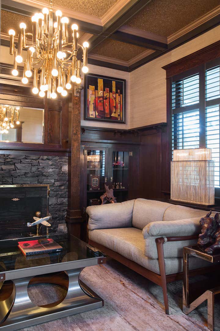 The clients of this 1910 Arts and Crafts home wanted to retain the character of all the original architectural elements while attempting to modernize it. Paul Hardy sourced an eclectic mix of mid-century pieces that would fit with the proportions of the tiny rooms and pair well with the quirky art collection belonging to the owners.