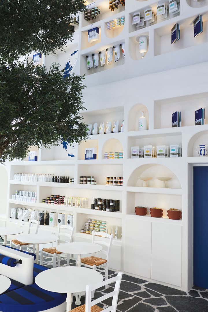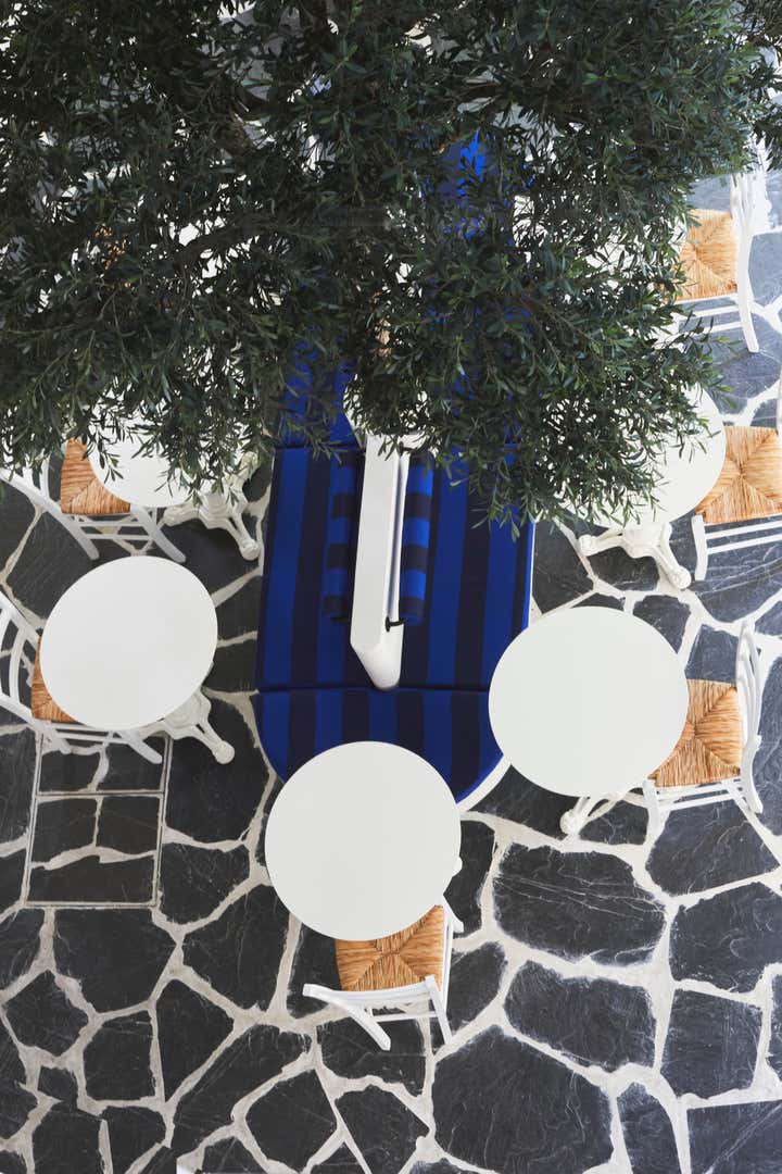 This place, thought of as a Greek village square, transports you and awakens all you senses. From the entrance, a majestic olive tree welcomes you with the sweet song of the cicadas.