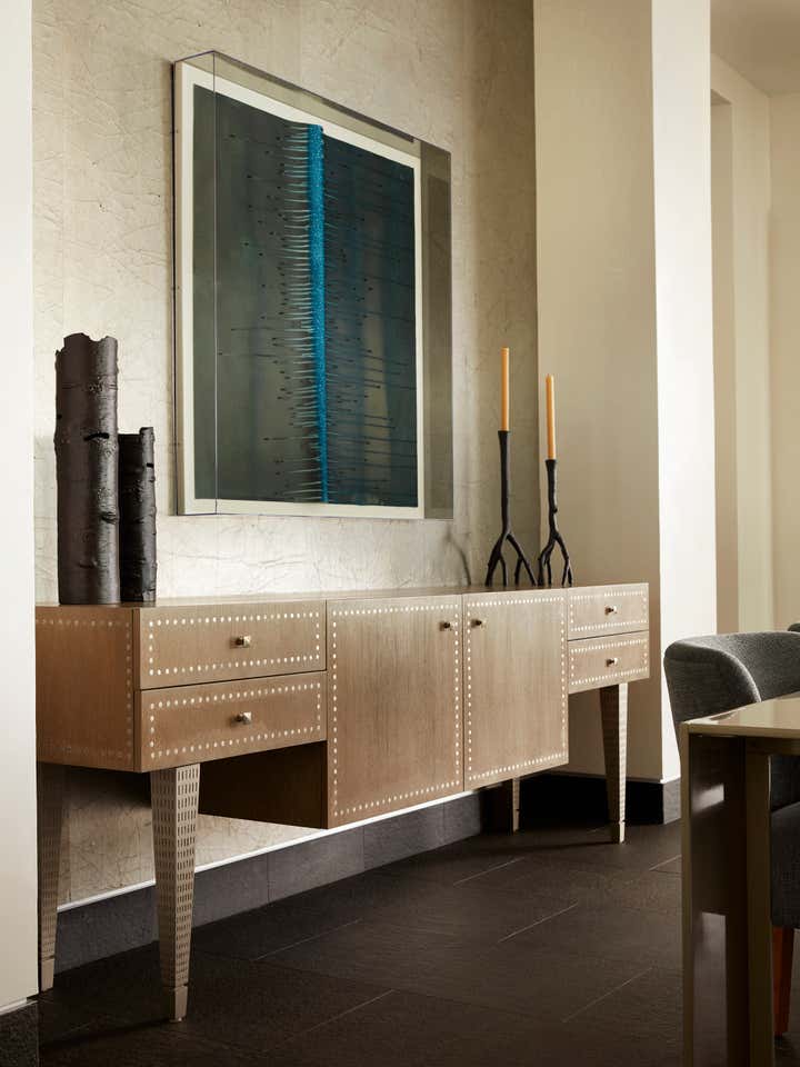 This 14,000 square foot home sits on 16 acres overlooking iconic Paradise Cove. It has 180 degree unobstructed views of the water as well as the notable distinction of being one of the largest LEED Platinum private residences in the United States. Bradley integrated the interior and exterior spaces to provide seamless indoor/outdoor living for his clients. Taking cues from the hills above and the sand and water below, he created an earthy environment that is relaxed enough for Malibu living, but sophisticated enough for world class entertaining. The home features several of Bradley’s custom furniture pieces as well as artwork from notable Los Angeles artists.