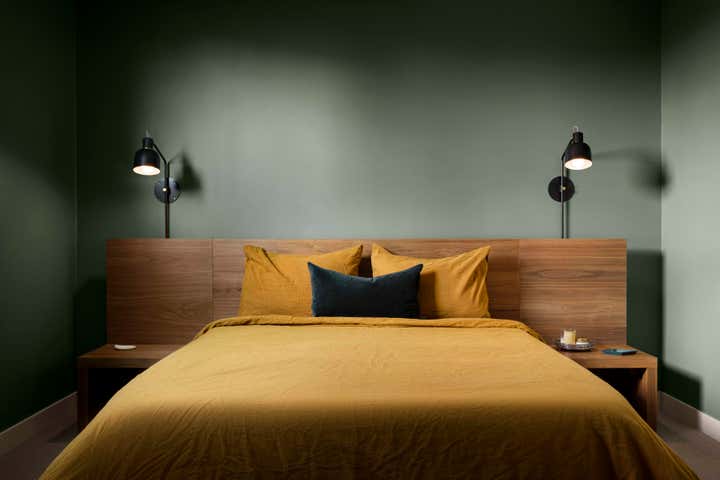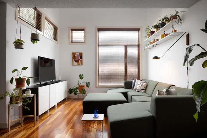 Inspired by the mid-century modern art and design, this inner-city townhouse takes on bold accent colours to create a warm and cozy atmosphere. Shades of rich greens, ochre and chartreuse throughout the dwelling creates a cohesive colour story. The curated furniture selections include mid-century classics, new functional pieces, and vintage furniture finds.