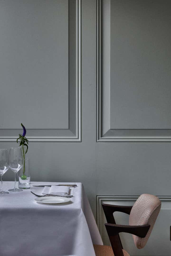Godrich Interiors created this tiny jewel of a restaurant alongside celebrity chef Marianne Lumb. Seating only 14 people, attention to detail was key. Timber panelled walls and the semi-sheer café curtains create a cosy atmosphere. Smoked oak cabinets detailed with aged brass showcase the wine and vintage wall lights throw starburst patterns across the walls. A strip window set at eye level within a plush cotton velvet panel allows for a sneak view into the kitchen to see the chefs at work.