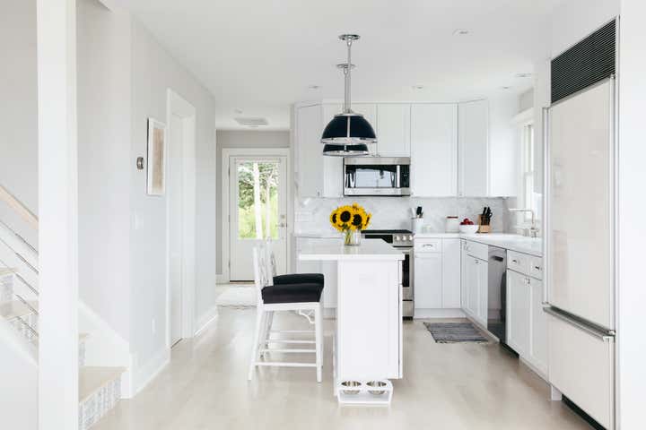 Our Mattituck, Northfork project has a simple, yet classic design. Incorporating a light and dark color scheme establishes a sense of contrast and depth, while the open plan of the space enhances the spacious and airy ambiance.