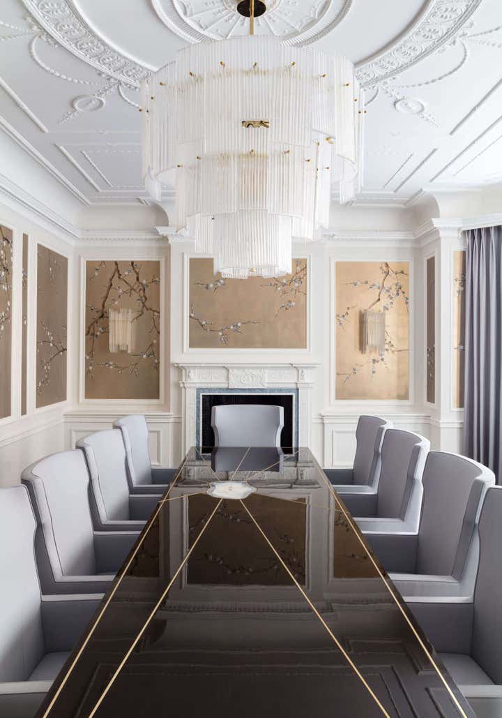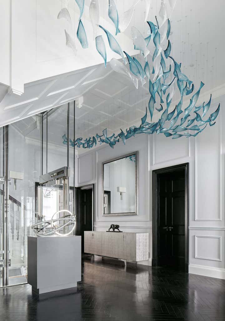 One of London’s most impressive private residences, this seven floor townhouse in the heart of exclusive Mayfair sets new standards for British luxury interior design. The award winning luxury interior design of the townhouse encompassed all facets of the design, project management and installation. Previously a commercial property, Katharine Pooley helped redevelop this Grade II listed townhouse property into an incredibly luxurious, contemporary family home. From its precision engineered, futuristic glass car lift and lift shaft, to the bespoke chandeliers and cutting edge gym, every detail of this luxurious townhouse’s interior design was considered by Katharine and her eye for exquisite detail. With one of the largest roof terraces in Mayfair, a collection of sculptures and an onyx-clad spa, this impressive property embodies the best of luxury interior design, home dressing and art curation executed to the highest standard by Katharine and her home dressing team.