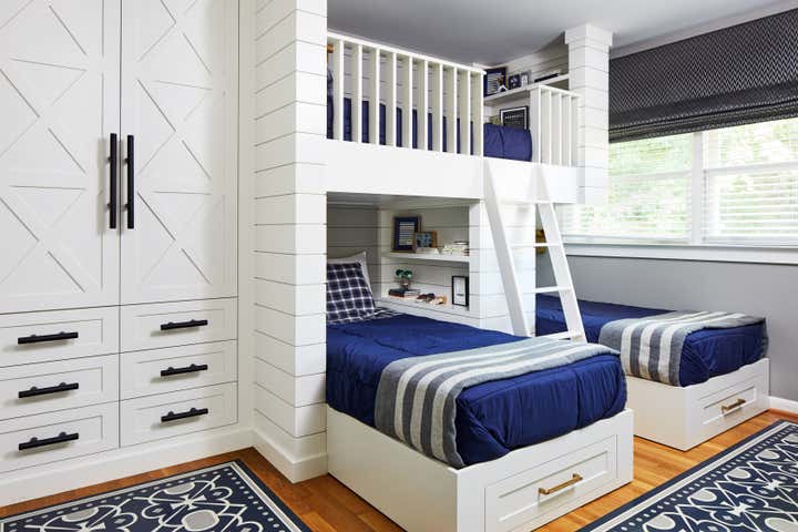 This family of eight was bursting at the seams of their two-story (3-bedroom) ranch style home in McLean, VA. They were in desperate need of storage solutions and wanted to add life and organization to the main living areas and update the bathrooms in their home while making sure that the kids still had their space to be kids. Laura helped them to re-imagine the space and incorporate plenty of built-in storage while breathing new life into their beloved home.