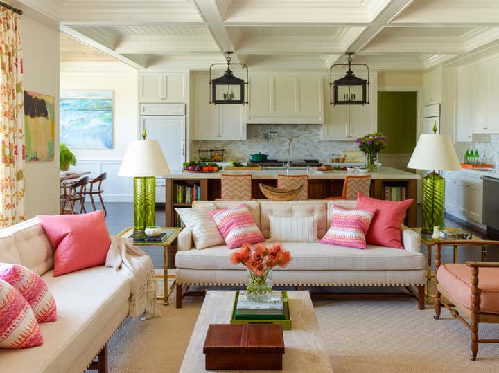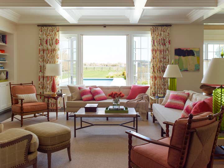 We transformed this weekend home into a beachy, yet sophisticated retreat for parents, children and frequently visiting grandparents to co-exist. With three kids in the mix, durability and easy maintenance were top priorities, but we aimed to never compromise on style. Playful zings of color were inspired by the client’s love of Lily Pulitzer.