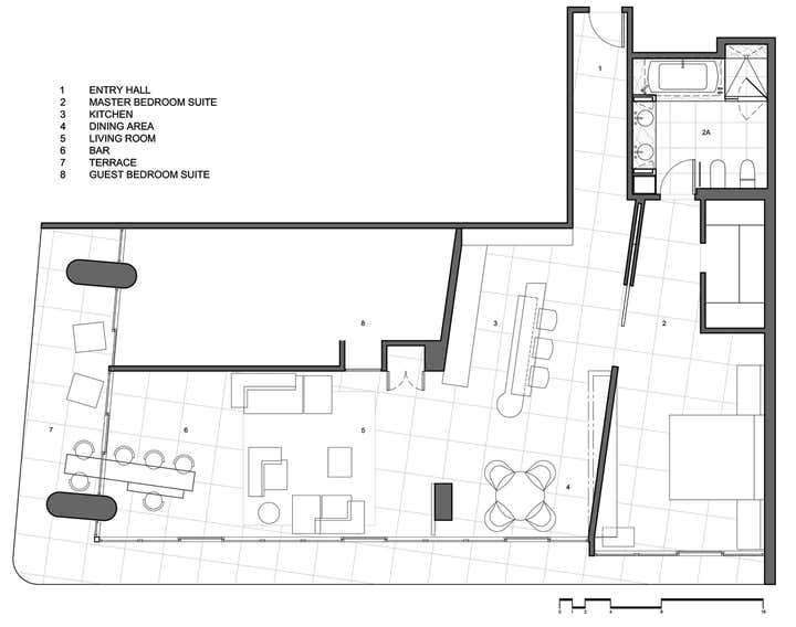 Architectural renovation and interior design of a penthouse pied-a terre apartment in Miami.