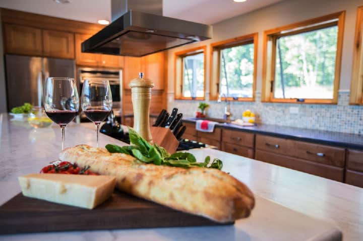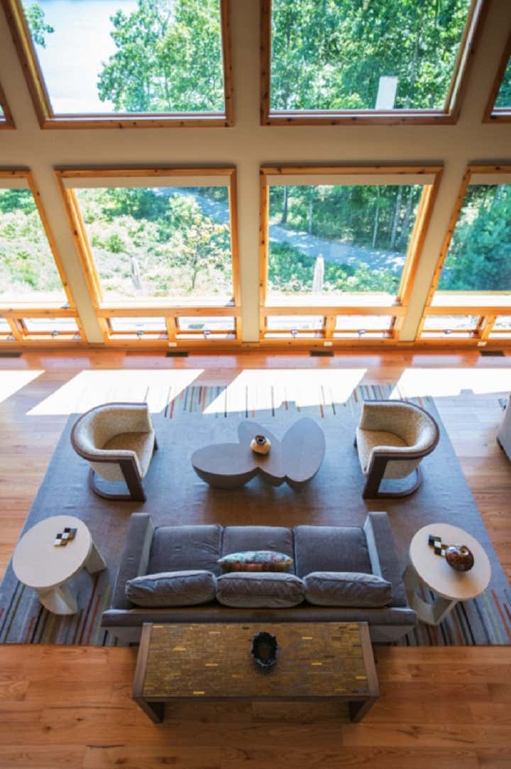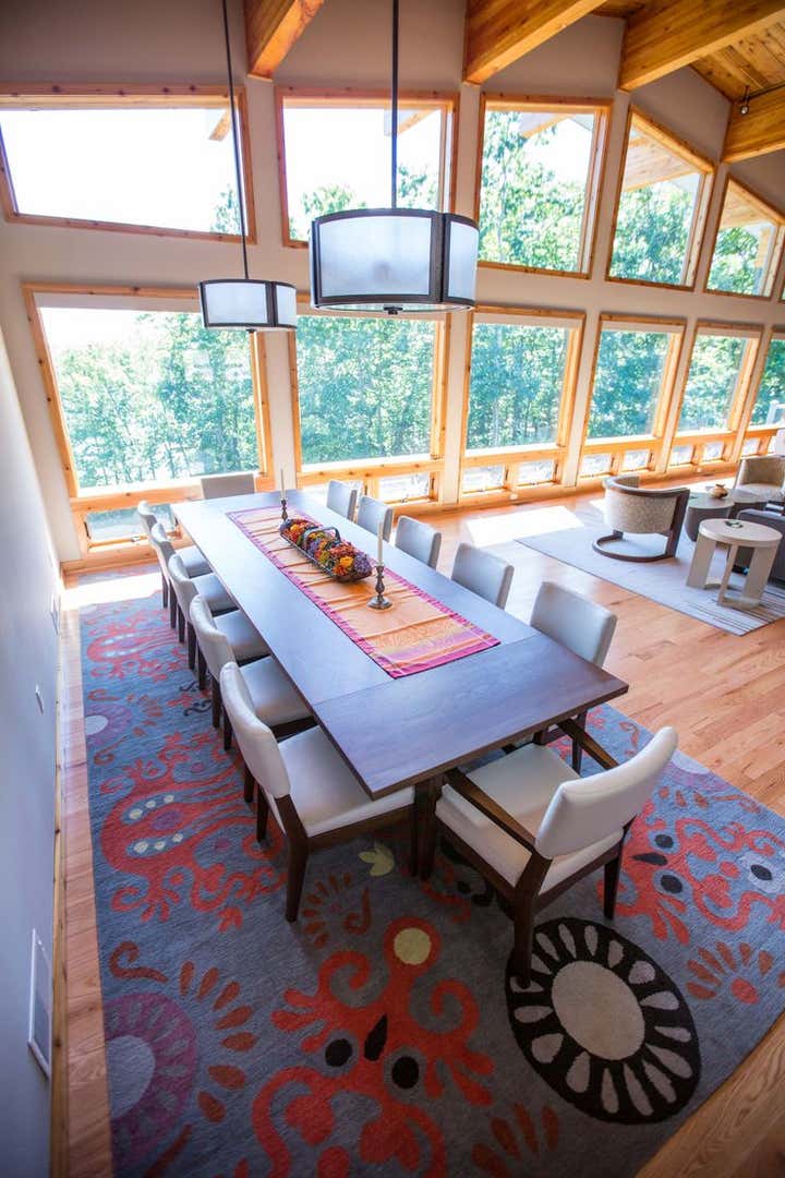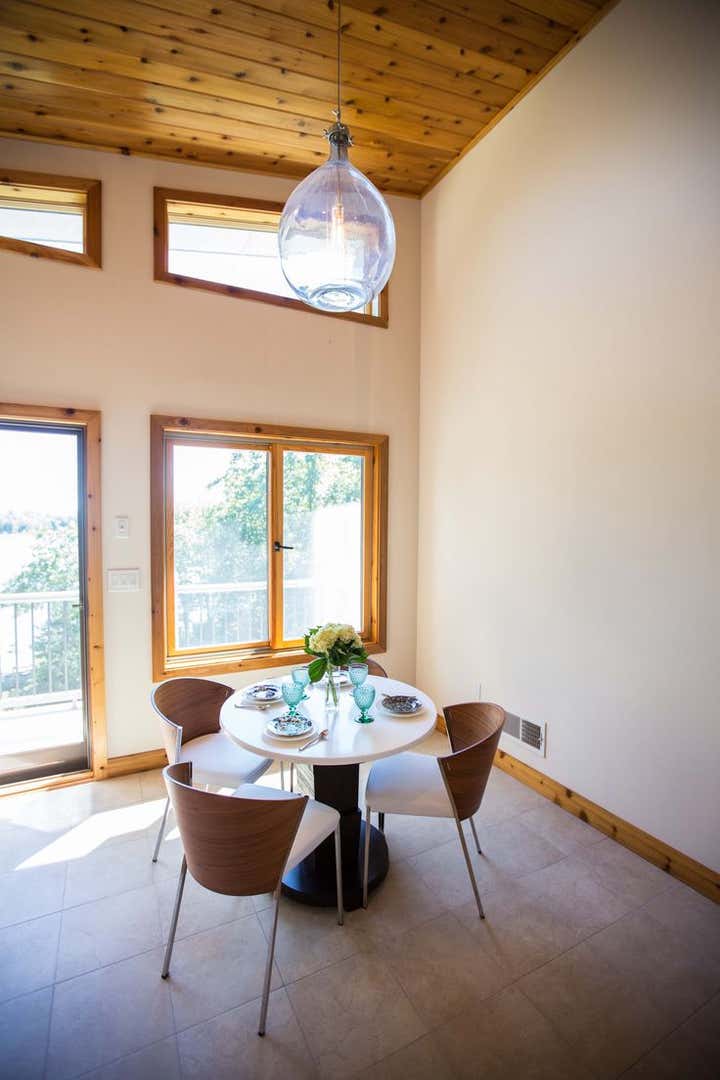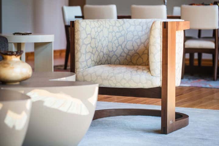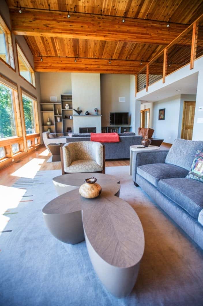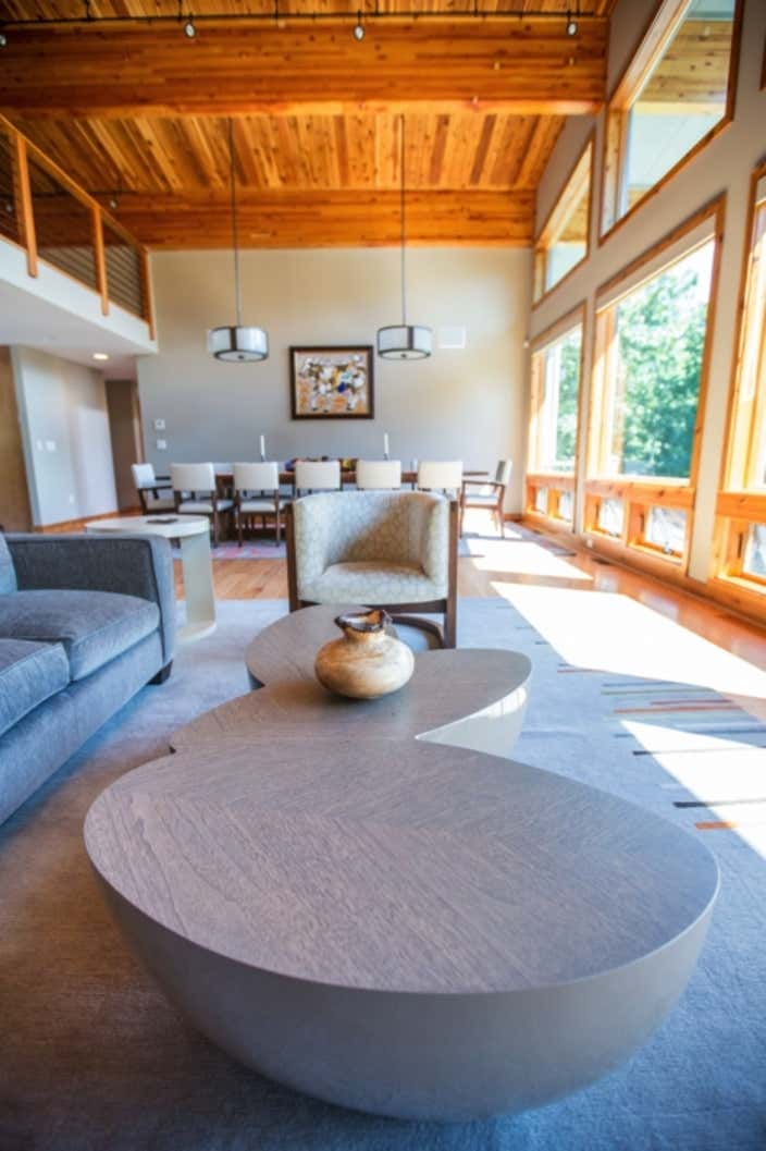 This modern lake house was custom built for a wonderful couple with high style and family accommodations in mind. Every interior finish choice was thoughtfully made to achieve their overall vision of this dream home. All of the furnishings and lighting fixtures throughout the home were custom made, even the wool colors and patterns for the area rugs were hand selected. Clean lines and organic shapes were a winning combination for this project.