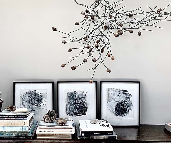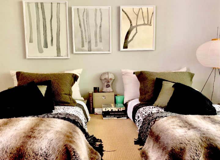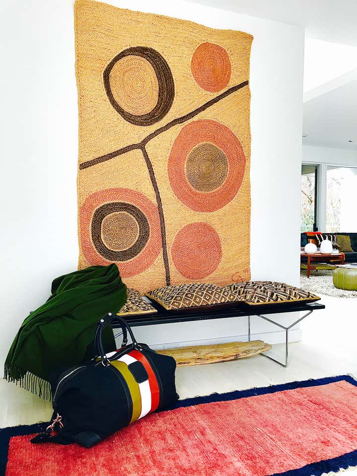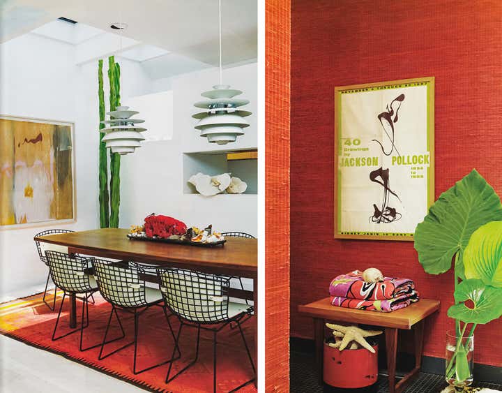 The incredible bones of this beach house—designed by the iconic 1960’s architects Barbara and Julian Neski—provided a clear jumping-off point in the design of its interiors. Modern at its core, the mission was to keep the clean lines of the home but warm the interiors so not feel as cold as a Hampton’s winter. Walls were painted a clear shade of white—but vintage rugs, art by Helen Frankenthaler, tapestries by Alexander Calder, and leather vintage Knoll couches warmed the interiors. Wallpaper was added in the primary bedroom as well the guest bath to add texture while still being respectful to the original architectural intentions of the house. The house has been featured in the New York Times and also graced the cover of Hamptons Cottage and Gardens magazine.