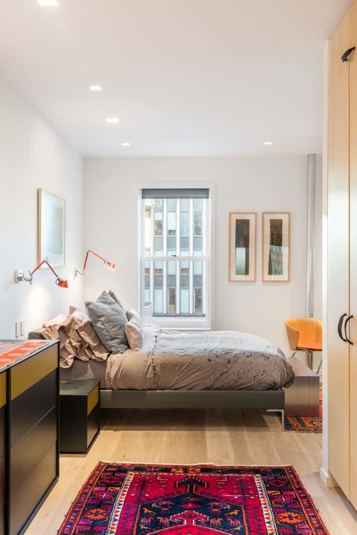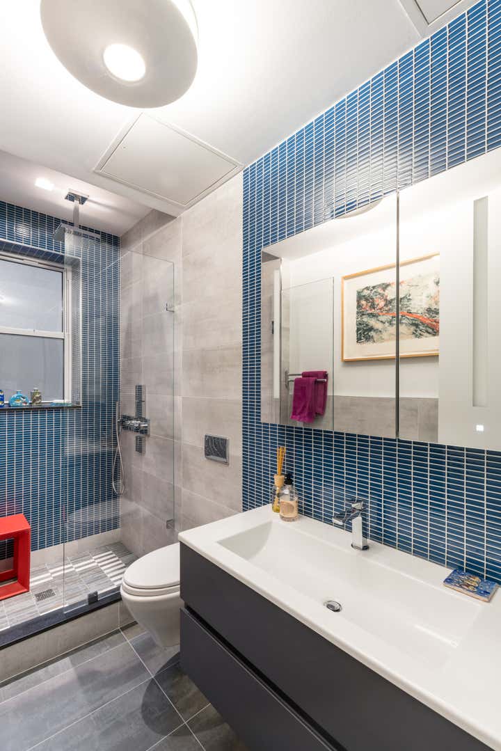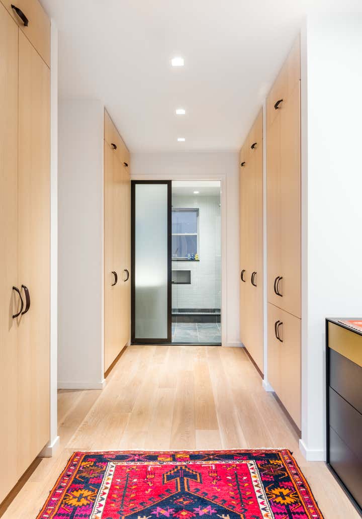 The primary suite offers a tranquil escape, with thoughtfully integrated built-in closets that blend storage and style. Bathrooms are finished with crisp, understated materials that feel fresh and modern while remaining highly functional. Clean lines and subtle textures throughout the home enhance its sense of ease and livability, making it a serene retreat tailored for modern urban life.
