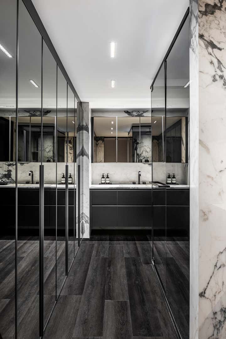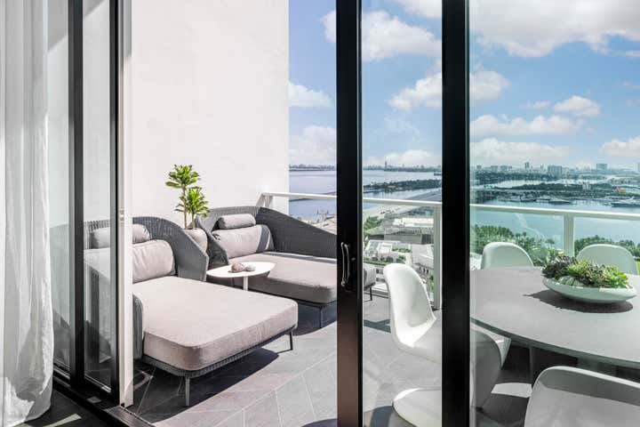 When the founding principals of B+G Design relocated from Ft. Lauderdale to Miami in the Spring of 2021, the design duo opted to transition to an 1,800 s.f. sky-high residence overlooking Biscayne Bay. They completed a full renovation of the interiors including a total kitchen remodel and adding an expansive pantry and foyer. The design includes bespoke built-ins, new bedroom and bathroom layouts and maximized storage opportunities. Apart from the structure of the steel staircase, they stripped the original apartment and reenvisioned every space. The creative process for this home took them on a journey where they balanced functional minimalism with their personal taste.