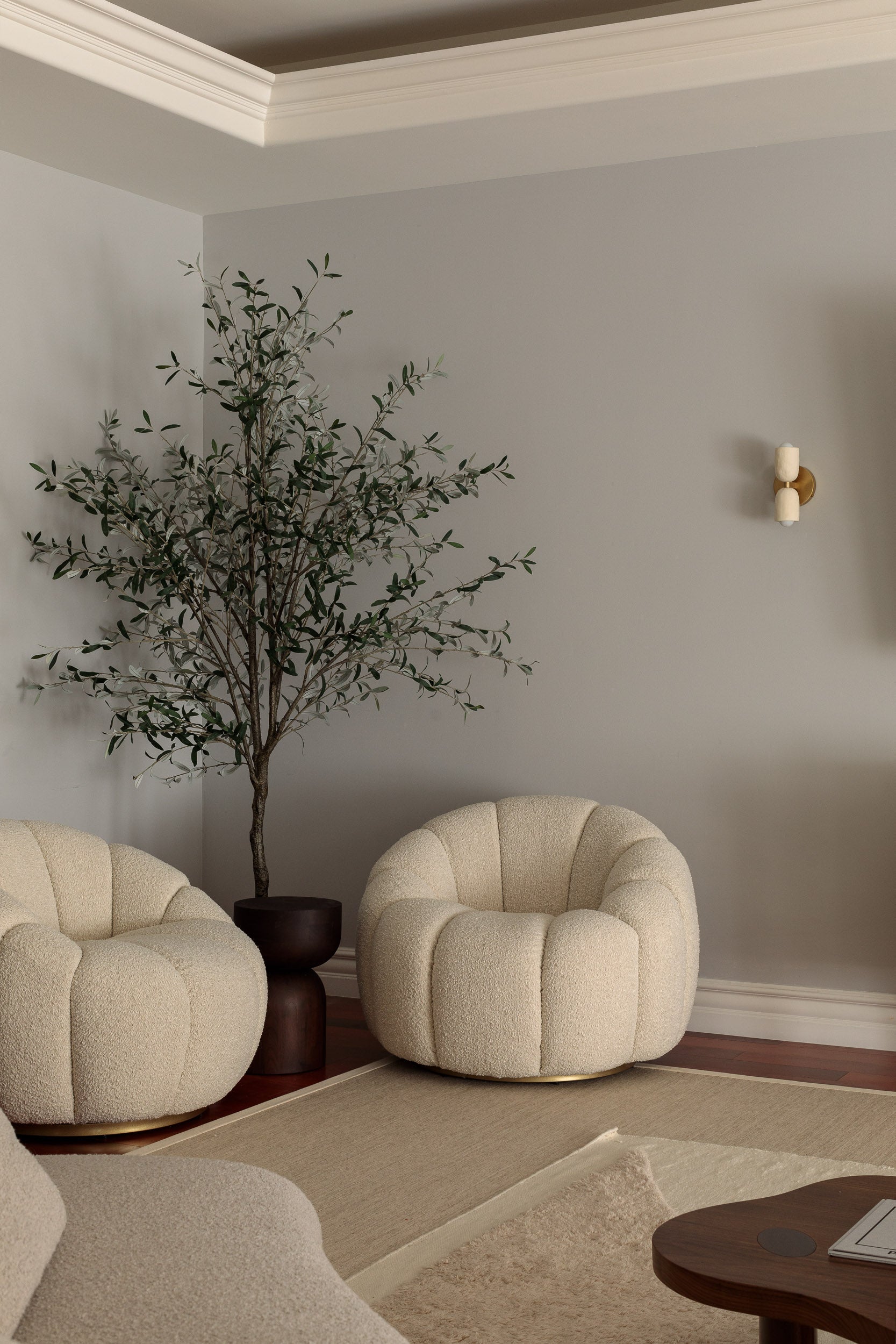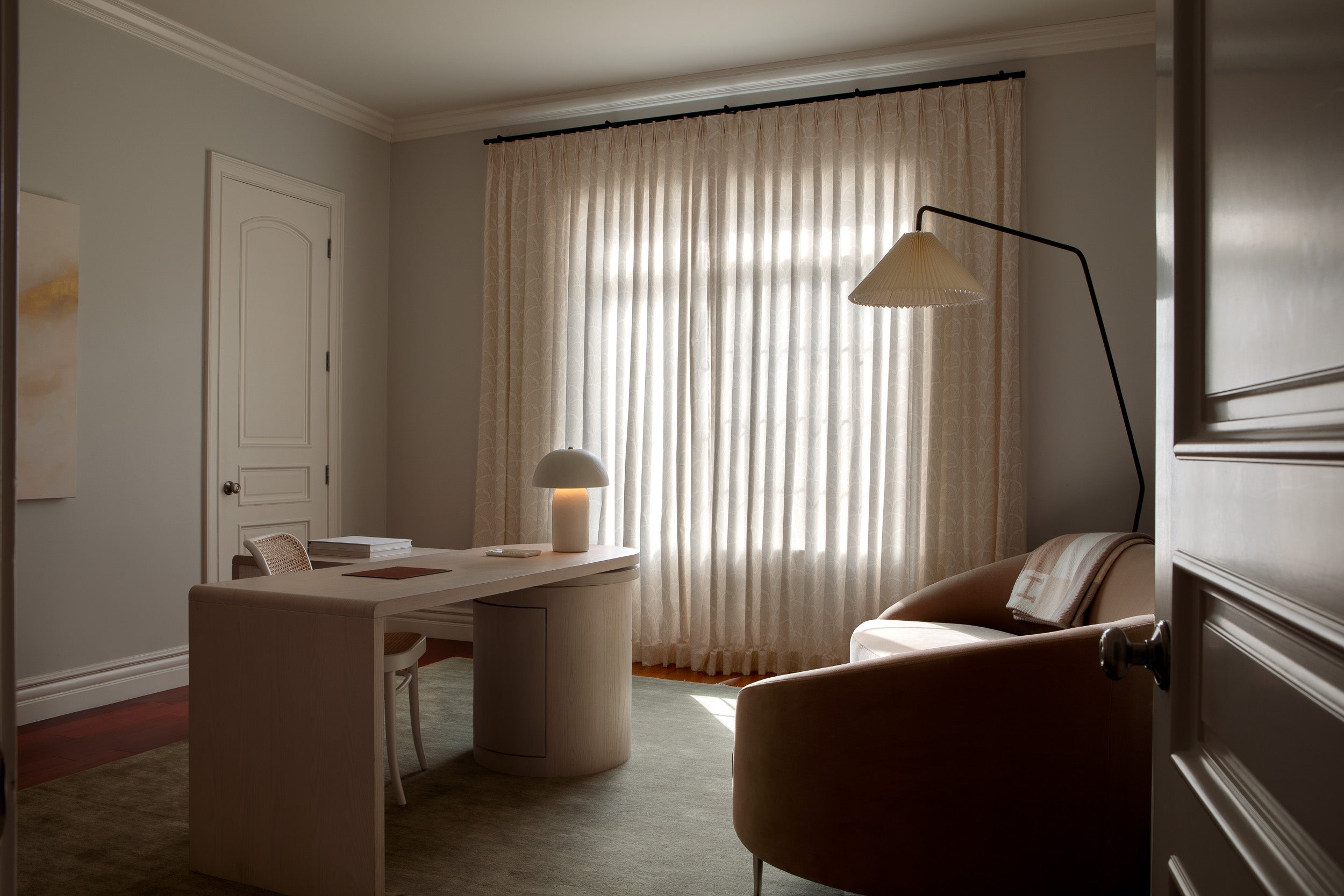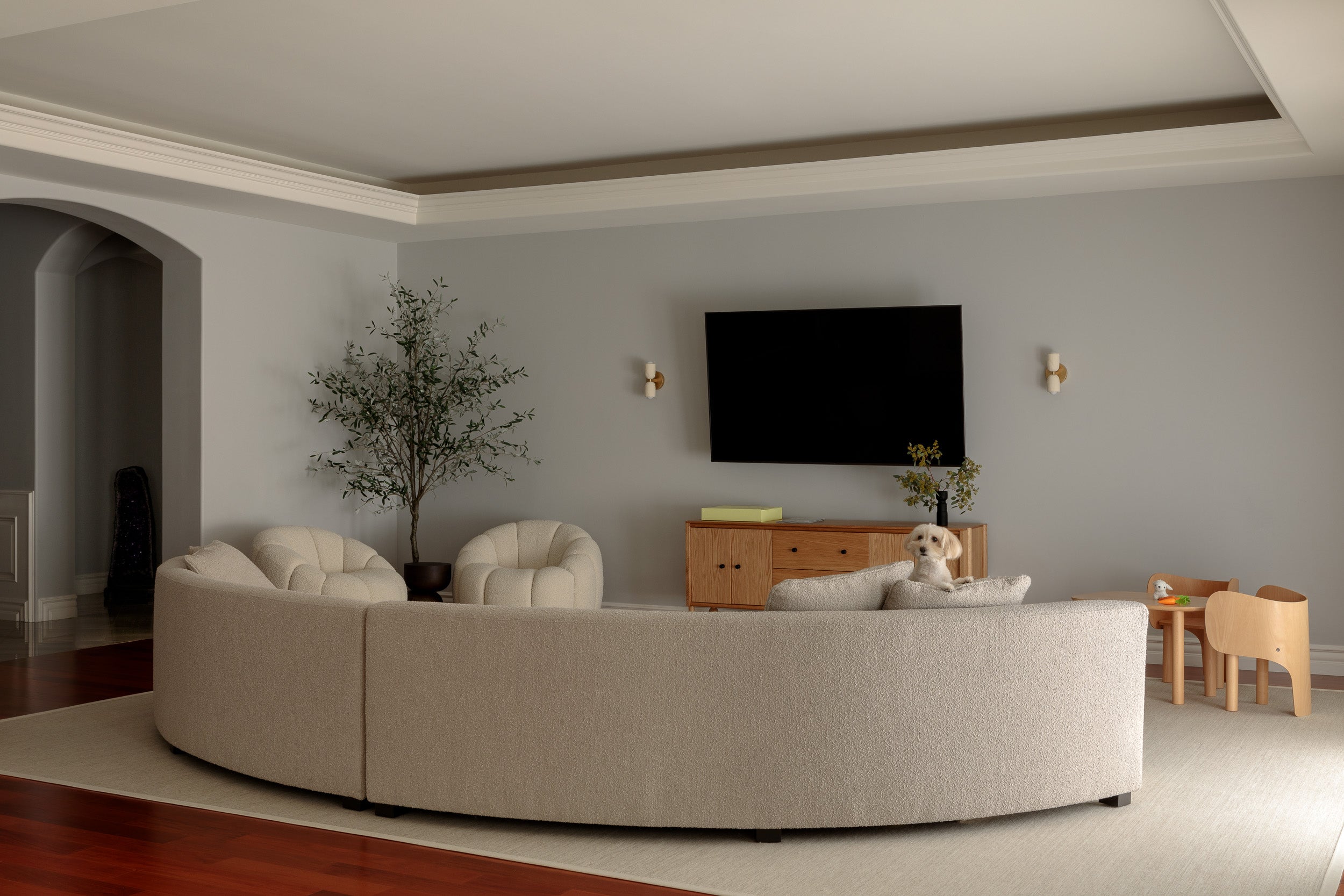 We approached each room as its own environment, carefully balancing scale through furniture selection and spatial arrangement. Custom pieces were designed to anchor large rooms without overwhelming them. The layering of textures—linen, velvet, natural wood, stone—adds depth and warmth to spaces that could otherwise feel institutional.