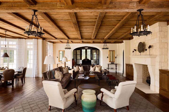This 7,000 square foot new construction home is a great architectural space and a fantastic spot for entertaining. The client’s fond appreciation for traditional French Norman architecture is evident, with complimentary furnishings, fabrics and custom light fixtures ensuring that they and their guests enjoy the experience of being in this warm and comfortable family home.