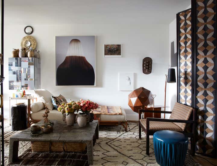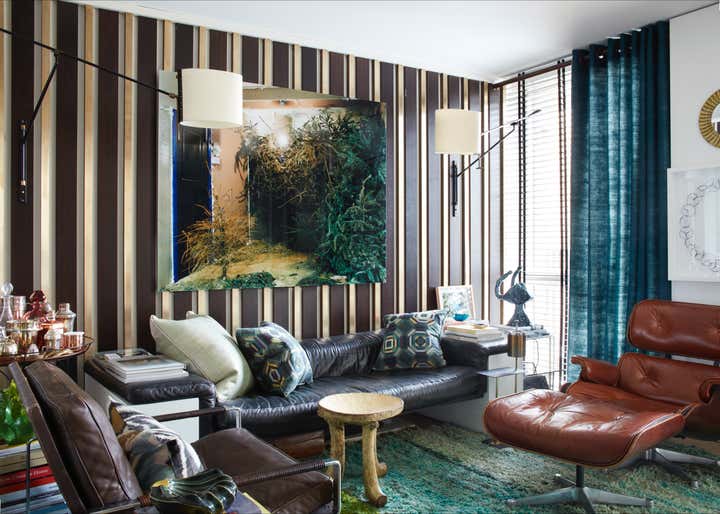 Located in London’s Notting Hill, Hubert Zandberg’s 850 square foot rental apartment was a temporary solution whilst he was between homes. Whilst no architectural works were undertaken, bold paint choices and the use of curtains to divide the space up created an atmosphere in which to showcase a curated selection of art, curiosities and furniture from Hubert’s extensive collection. Hubert’s experience in retail design merchandising allowed him to divide the spaces in an interesting way, and cleverly experiment with a multitude of pieces, using his existing collection in a completely new way. The combination of items and the dialogues between them was highly apparent in this apartment – a mix of curiosities from around the world including Paris, London, Berlin and Cape Town along with a mix of Brazilian, mid-century and Brutalist furniture all found a place and resulted in a harmonious space with a modernist maximalist aesthetic.