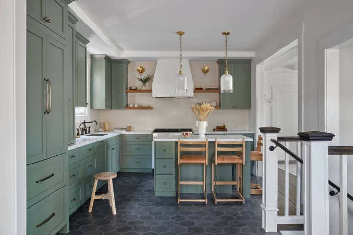 This Oakland residence was in need of a fresh beginning, starting with the kitchen. We updated the layout to create functionality and more storage for the kitchen area. We removed a half wall near the dining to create a more open airy vibe. We then added pantry space, and a built in bar in the dining area. Green felt right, neutral yet a nice pop of color as well.