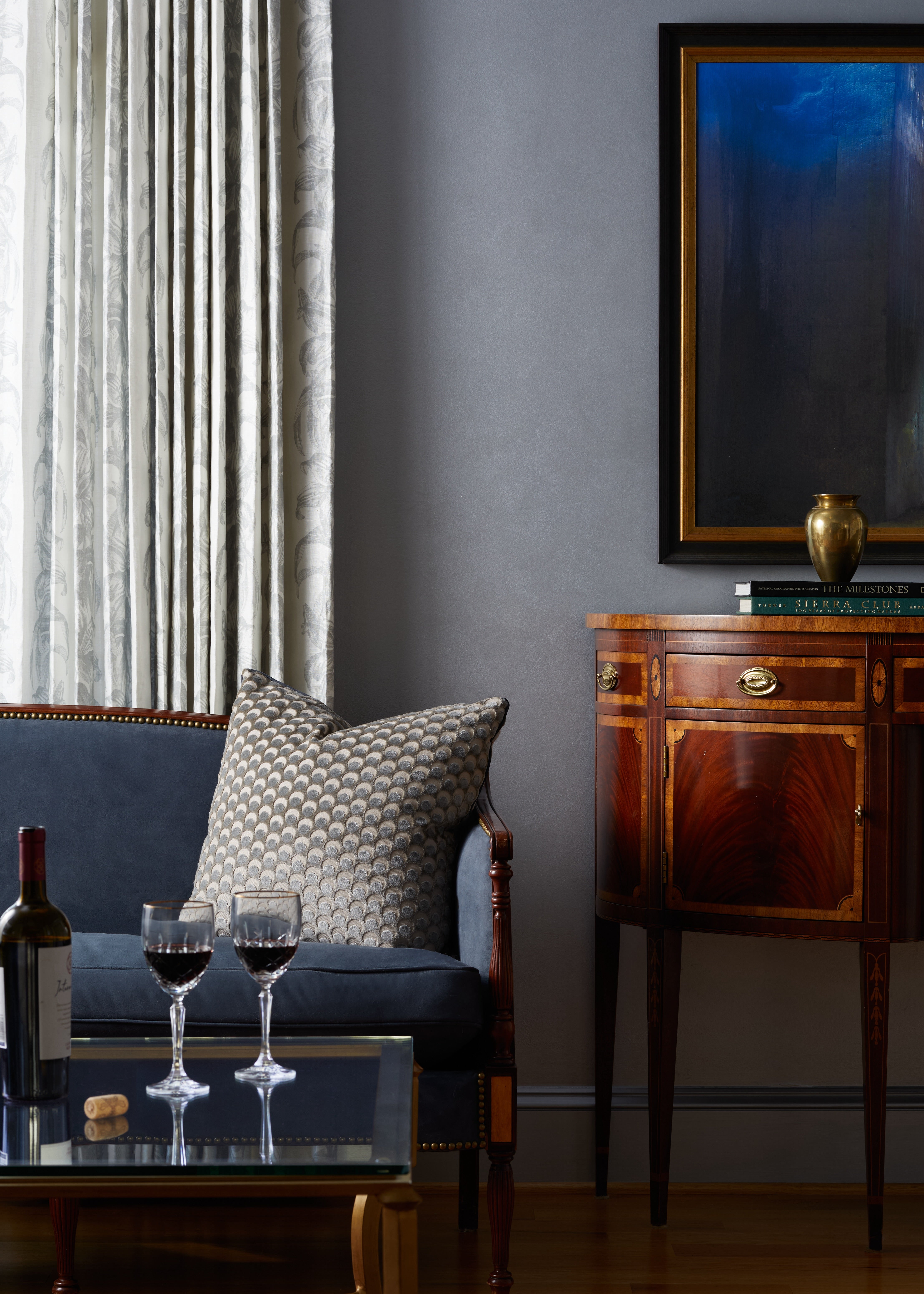For this family’s Edgewater, Maryland, home, our goal was to bring that same sense of balance and serenity into their environment. Inspired by their heritage and guided by the symbolism of Om, we curated a design that honors their roots while offering a timeless sense of peace, focus, and connection.