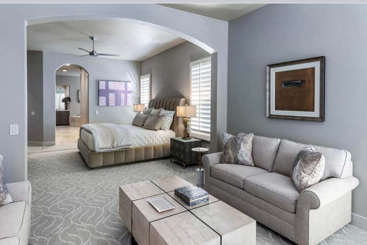 Redesigning a La Quinta home for a couple from the Pacific North West to embody their personalities by using unexpected elements, textures, geometry, and a sophisticated color palette, while challenging them to step out of their comfort zones. The project was completed September 2022.