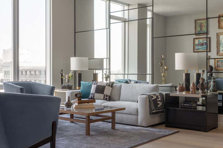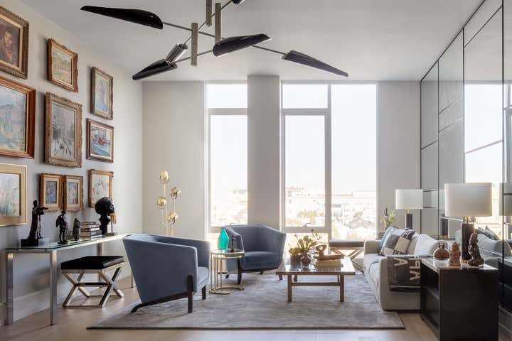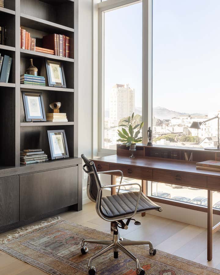 Located in the exclusive neighborhood of Pacific Heights, this pied-à-terre serves as a San Francisco home to an avid world-traveling academic with a passion for collecting. The goal of this project was to house our client’s extensive collection of impressionist paintings as well as pre-Columbian artifacts that he acquired through the decades in his many travels around the globe. Other features added during the remodeling of this luxury unit include a patterned mirror installation in the living room with an impressive result: maximizing views of Golden Gate bridge and Alta Plaza Park from different vantage points in the integrated living and dining space.