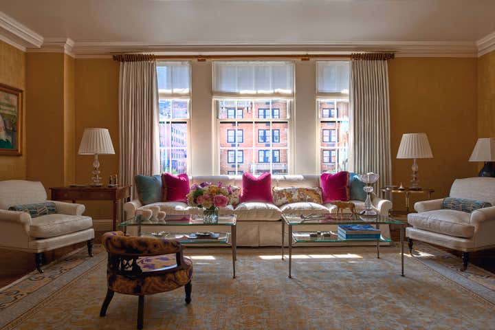 Inheriting a wonderful floor plan with beautiful detailing, this apartment was transformed from a more reserved space to one filled with color and detail embodying the client s exuberant personality.