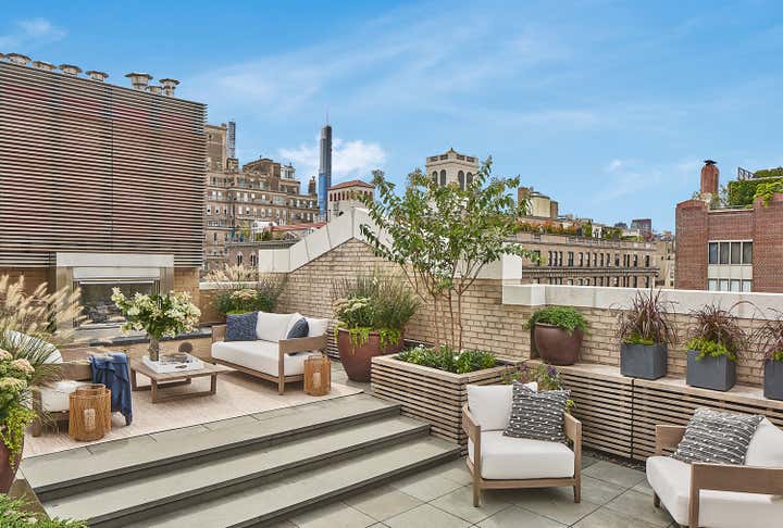 The scope of this Park Avenue triplex penthouse included refreshing the existing architectural elements and a complete redecoration of the main rooms and terraces.