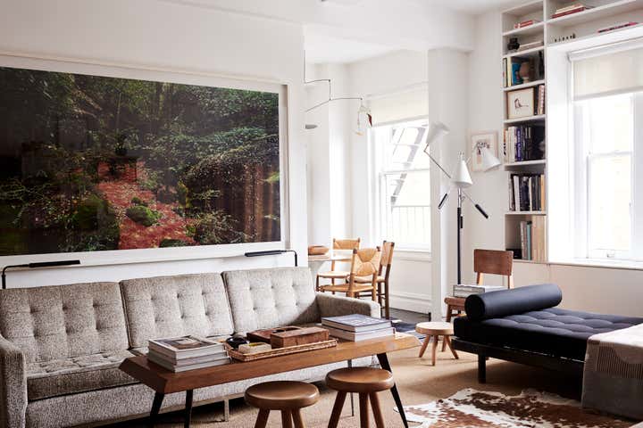 The apartment, located in a historic Manhattan pre-war building, required a major modernization. Together with the owner s extensive collection of mid-century European furniture and tribal art, the space was transformed from a dark and antiquated apartment to a light-filled, gallery-like space.