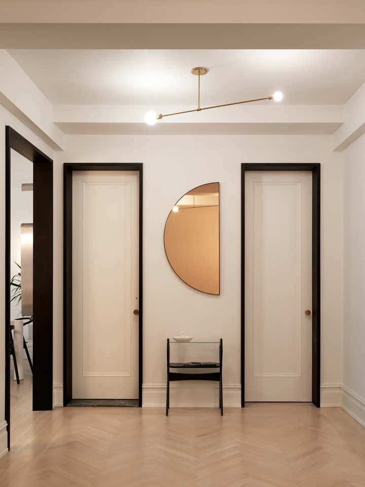A thoroughly transformed prewar Park Avenue apartment for a young and fun-loving family. Located in a distinguished Carnegie Hill co-op building, the 2,800 sf apartment has been reimagined for contemporary family life while retaining its original gracious formality. The renovation concentrated on maximizing the already well-proportioned formal spaces, including a generous entrance gallery, formal living room and dining room; while converting the dark and crowded storage and service areas into functional contemporary living elements. Because the historic layout was quite segmented, we set out to create enlarged openings to increase circulation between spaces. The selection of furniture, finishes, and unique art and design objects played a large part in maximizing natural light, visual interconnectivity, and playfulness throughout. Drawing from our experience designing micro apartments, we start every project, large or small, looking for a very flexible spatial organization, where spaces can slip into and overlap with one another. Not only is that how most of our clients actually live, but it’s a way to make sure that every space in a project is utilized The interiors throughout are a playful, graphic, and colorful mix custom and curated furniture, lighting, and artwork. MKCA is responsible for both architecture and interior design.