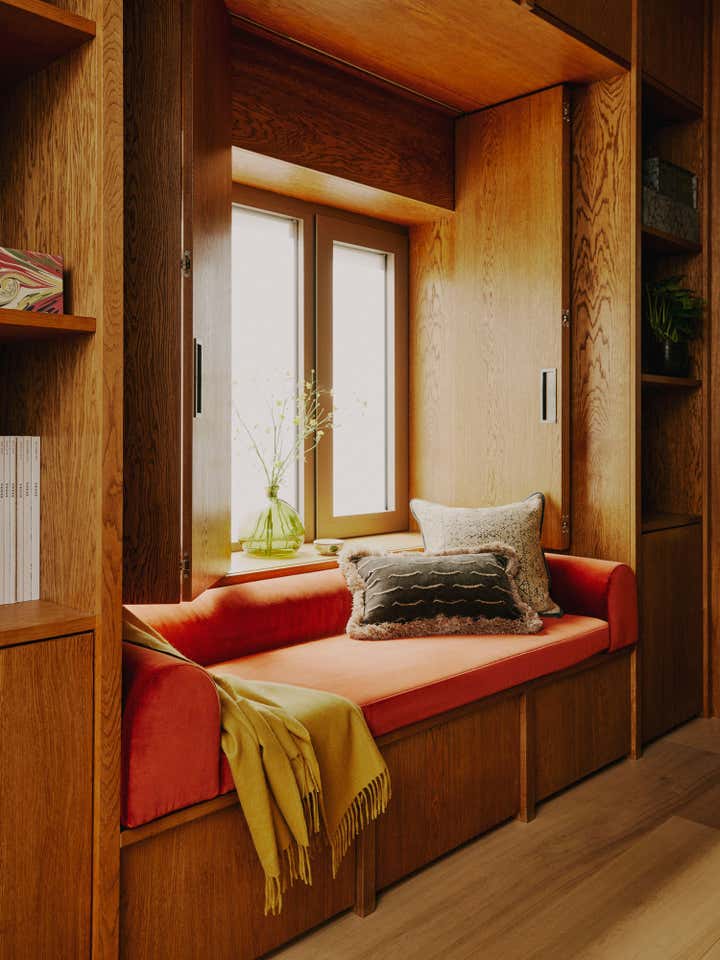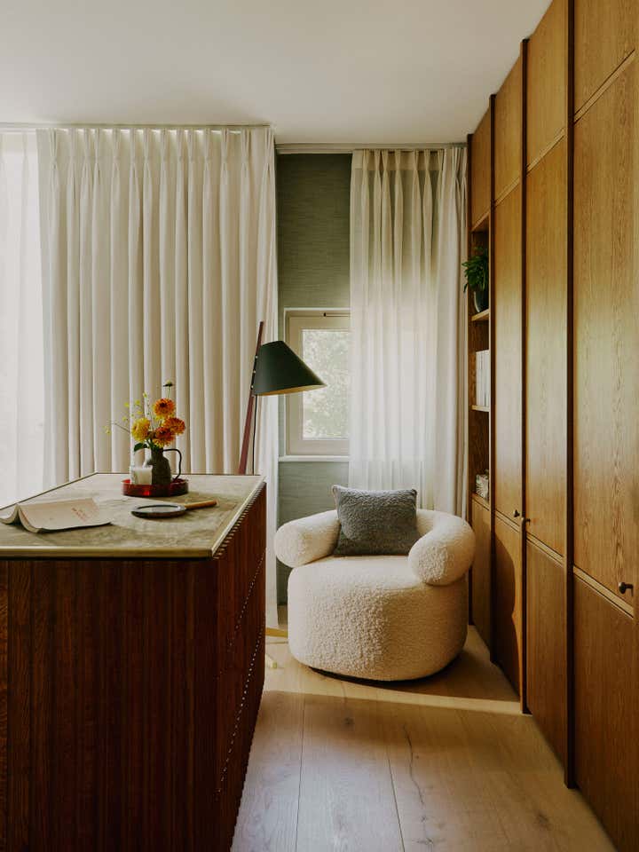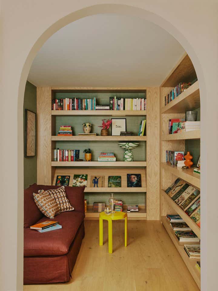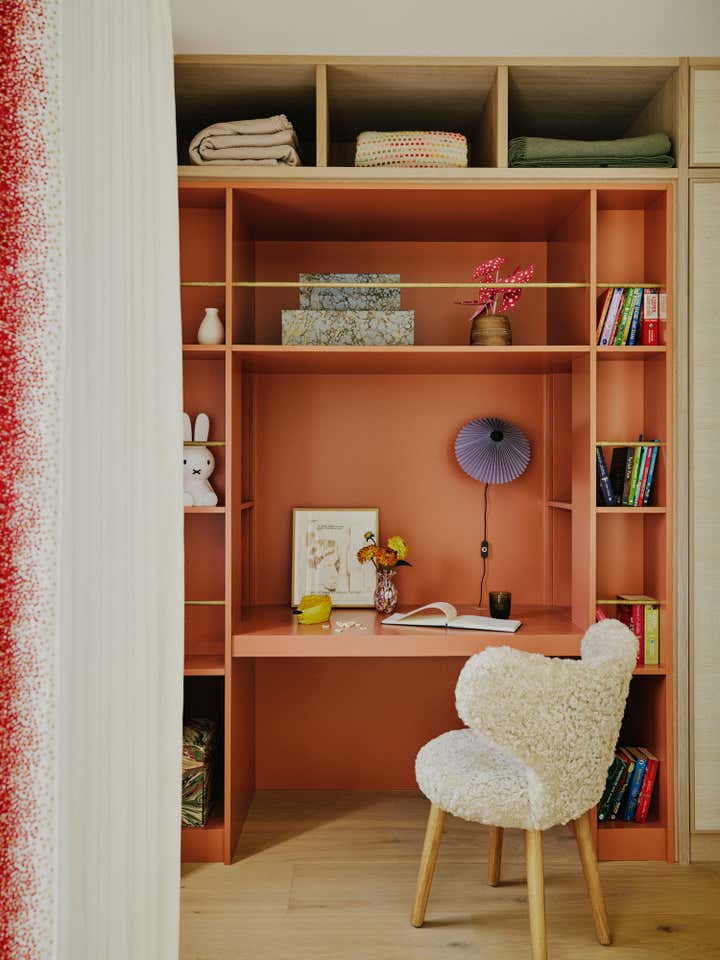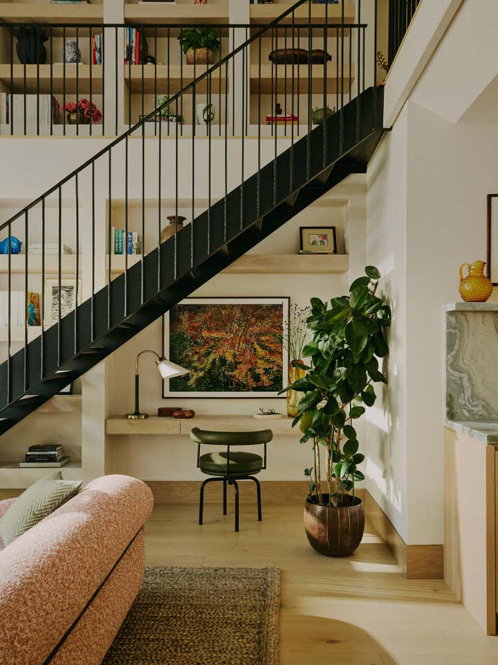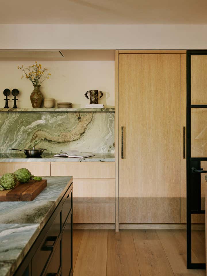 After living in their south-west London home for six years, our clients, a family with two young daughters, decided to undertake a full renovation, focusing on creating a space that reflected their long-term commitment to the house and area. The contemporary architecture, with its large windows and views of surrounding parks, needed an internal redesign to improve the flow, which we achieved by reconfiguring rooms and doorways. Open-plan living areas were balanced with smaller spaces for personal activities, and materials like pale oak floors, rich timbers, blackened steel, and green marble were used to create a harmonious, earthy palette throughout the home. The design incorporated bold, creative elements, including custom bookcases, vibrant artwork, and unique lighting, while the family, including the children, actively contributed to the process, resulting in a highly personalised, warm, and nurturing space that supports their creative and adventurous lifestyle.