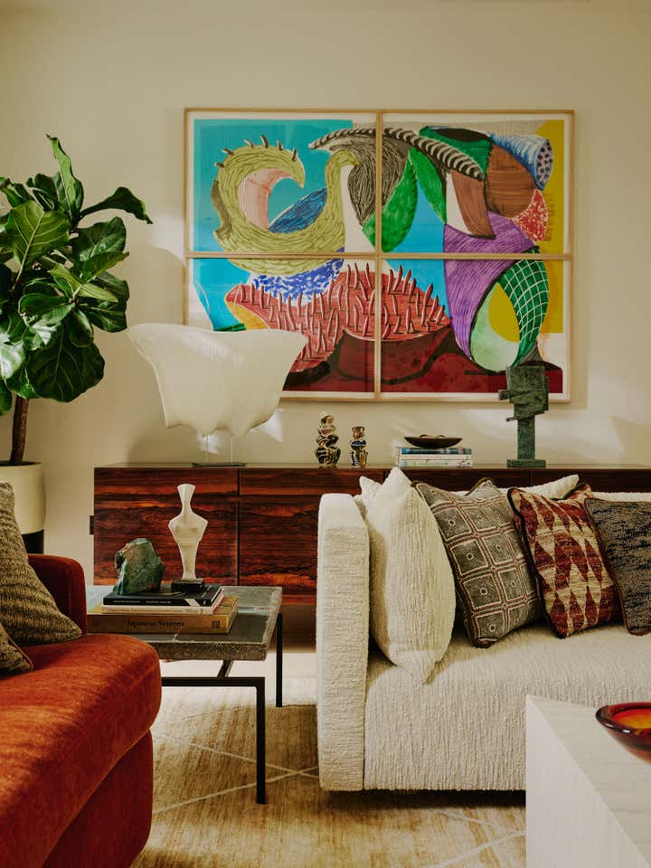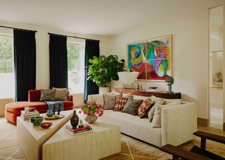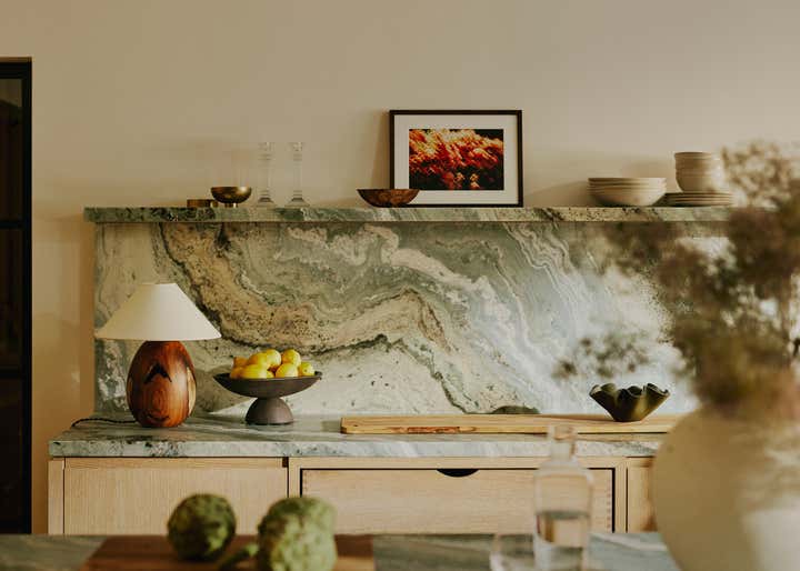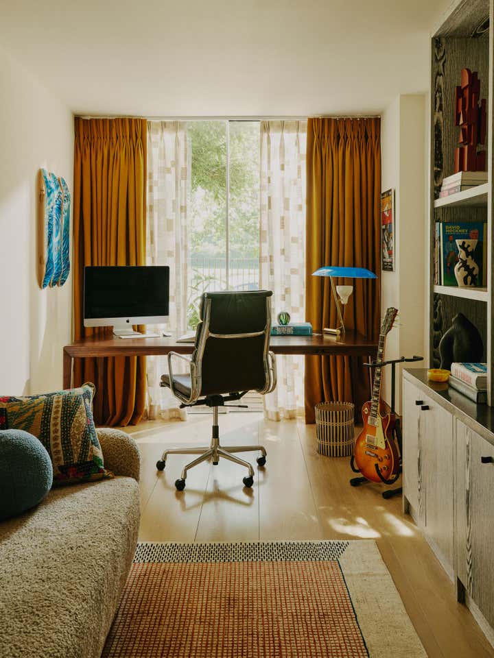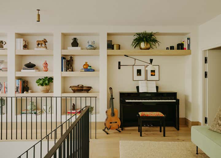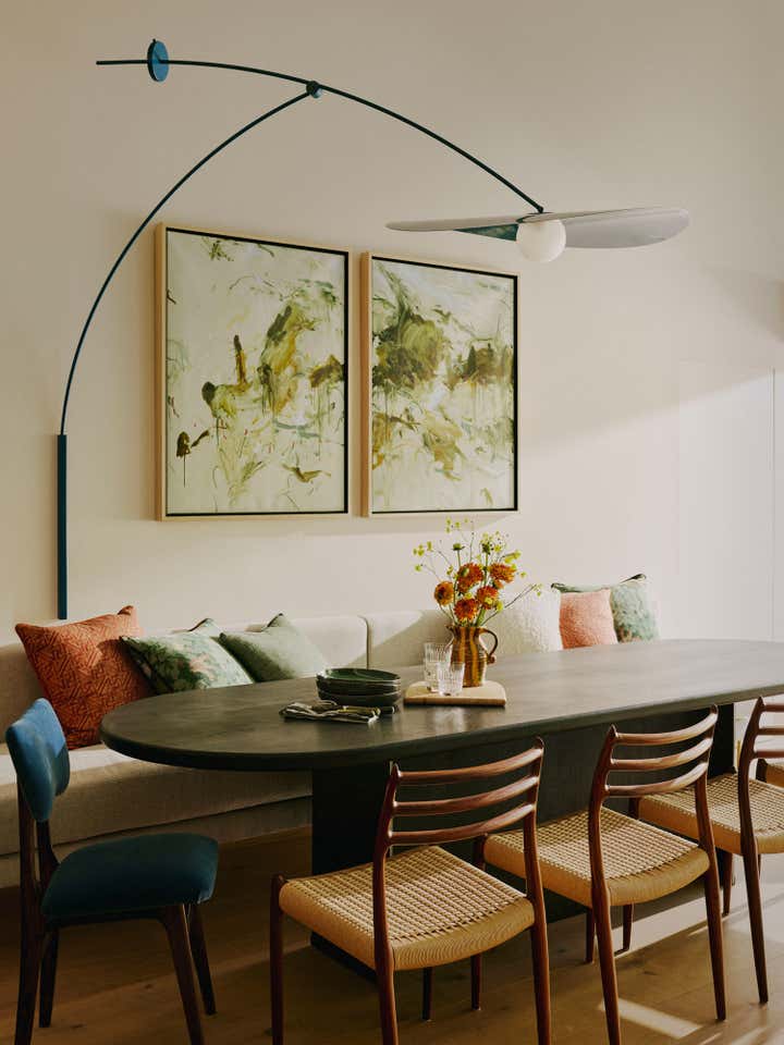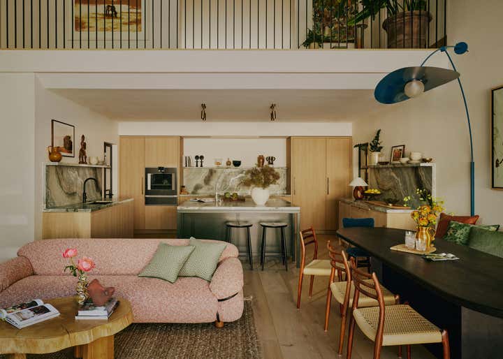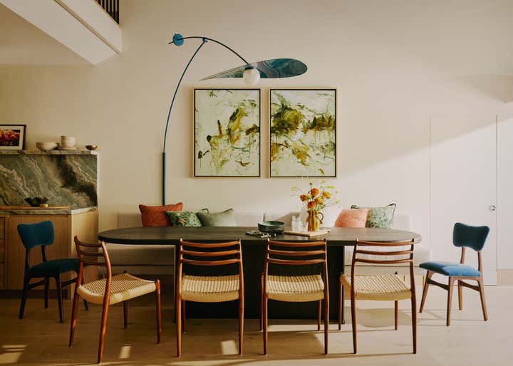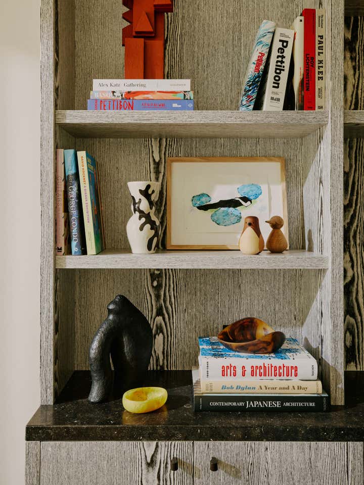 After living in their south-west London home for six years, our clients, a family with two young daughters, decided to undertake a full renovation, focusing on creating a space that reflected their long-term commitment to the house and area. The contemporary architecture, with its large windows and views of surrounding parks, needed an internal redesign to improve the flow, which we achieved by reconfiguring rooms and doorways. Open-plan living areas were balanced with smaller spaces for personal activities, and materials like pale oak floors, rich timbers, blackened steel, and green marble were used to create a harmonious, earthy palette throughout the home. The design incorporated bold, creative elements, including custom bookcases, vibrant artwork, and unique lighting, while the family, including the children, actively contributed to the process, resulting in a highly personalised, warm, and nurturing space that supports their creative and adventurous lifestyle.