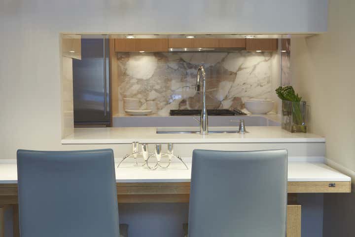 The design challenge set by Dale’s client, a stylish couple wishing to re-occupy a city apartment after raising children in the suburbs, was to transform a one bedroom developer apartment into a chic Pied-a Terre. The apartment while small in footprint was poised to be large in impact. Each design element was selected with care and deployed with artful precision, allowing the space to be both efficient and elegant.