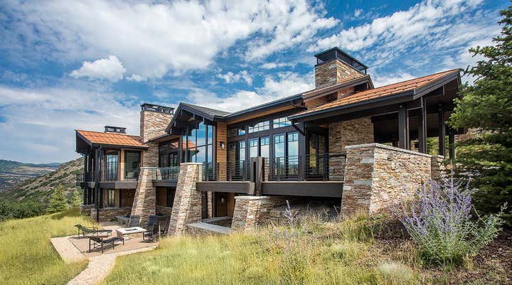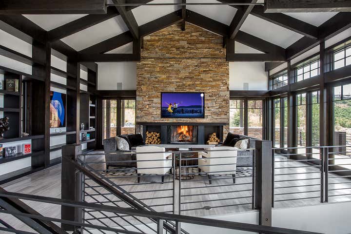 This transitional modern design offers its empty-nester owners the best of both worlds: a serene retreat as well as an ideal gathering place for entertaining family and friends. The generous lot – expanding over one acre – allowed for a precise build accentuating spectacular mountain views and the surrounding rocky terrain. This 6,000 square foot home – with 4 bedrooms and 5 baths – includes a great room featuring barn-like trusses, a nod to the residents’ avid equestrianism. Active conviviality also beckons from the expansive exterior decks offering covered and uncovered patios, an outdoor fireplace and two hot tubs. Located in a secluded enclave of a Park City gated community, this home maximizes relaxation, security and the simple joys of mountain living.