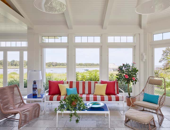With a traditional shingle exterior that belies the treasure inside; perhaps the only suggestion of the glamour to come in this Quogue home is provided by the glistening Shinnecock Bay itself.