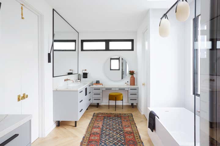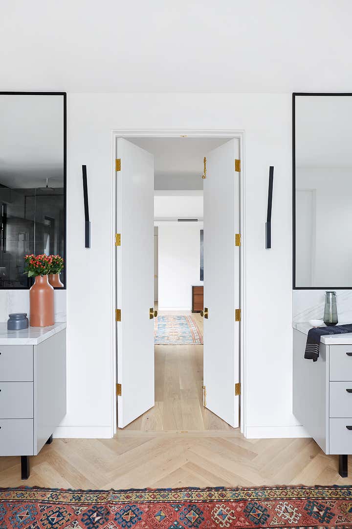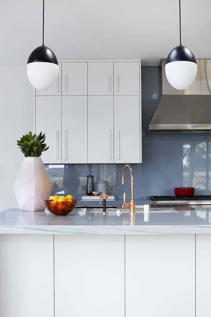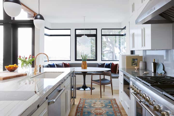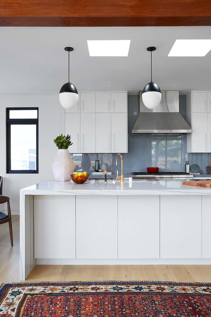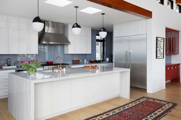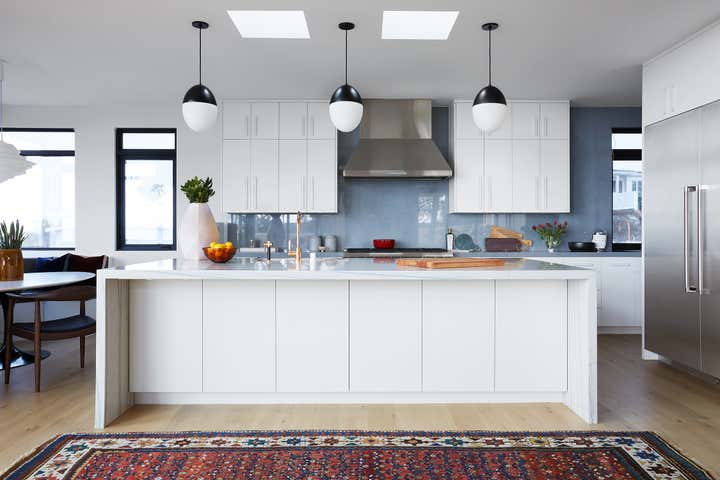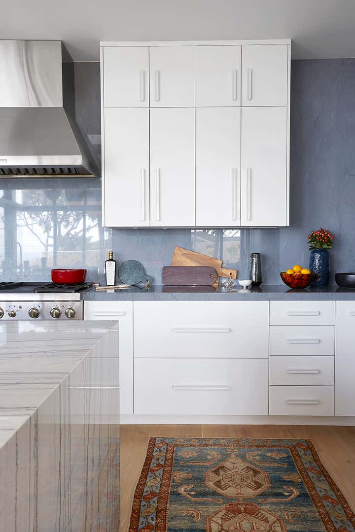 We often meet clients who aren t entirely settled on their design aspirations, but, in this case, our clients came to us with a clear vision they had been fostering for years. The globe-trotting husband and wife had just hired an architect to build their forever home from the ground up when they asked us to join the team, lending to the project our particular penchant for color and eye for elevated eclecticism. They commissioned us to create an interior inspired by the husband s childhood love of mid-century modern design but also by all the special pieces the couple had collected around the world together. With breathtaking ocean views and boasting an eclectic collection of art, the interior became a clean, tonal backdrop full of sophisticated, modern materials that complemented the architecture - an ideal canvas for layering fun punctuations (like color-soaked cabinetry, luxe stones, and fearlessly finished hardware) and paying homage to various design styles. As always, we worked closely with our team of fabricators to flawlessly execute this unusually custom home - from the smallest details (the entry s oversized, brass bamboo door handles) to architectural focal points (a blackened steel floor-to-ceiling stairway partition) - and we couldn t be more thrilled with the end result.