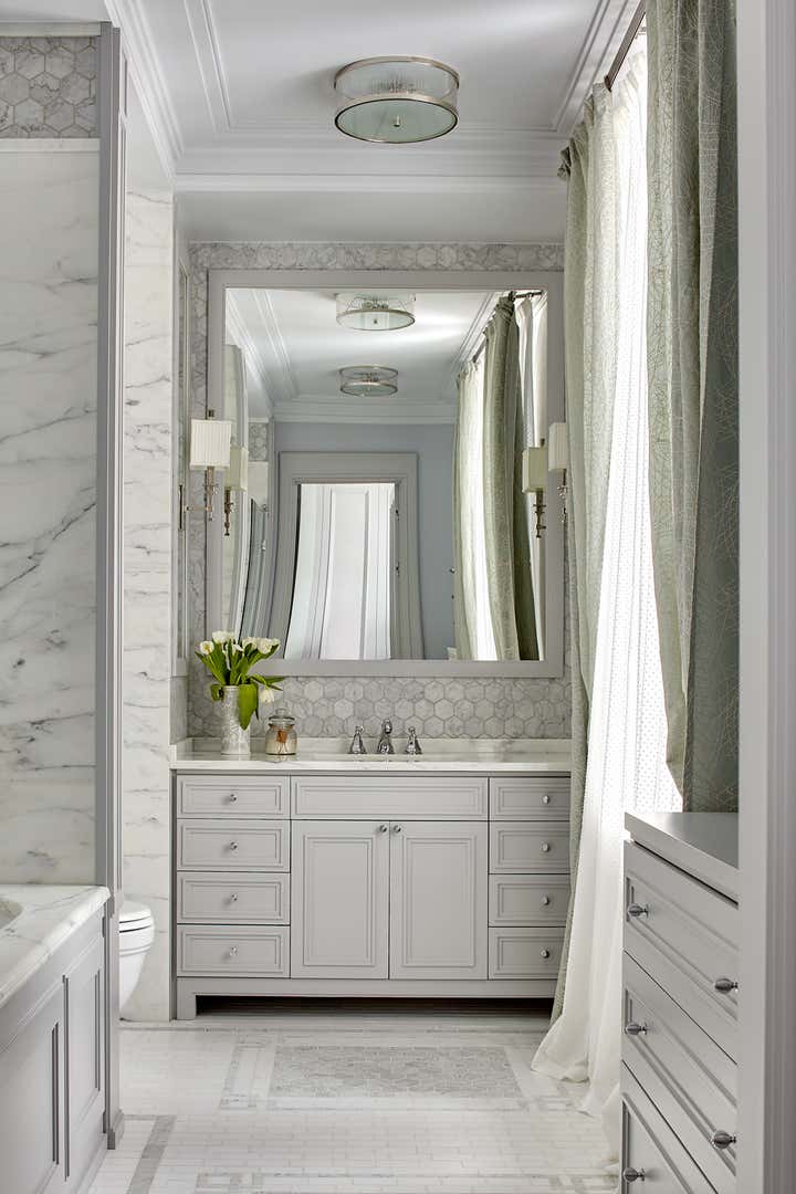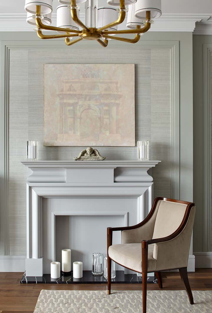 design style. Strict geometry gets together such materials as wood and glass, brass and marble. The