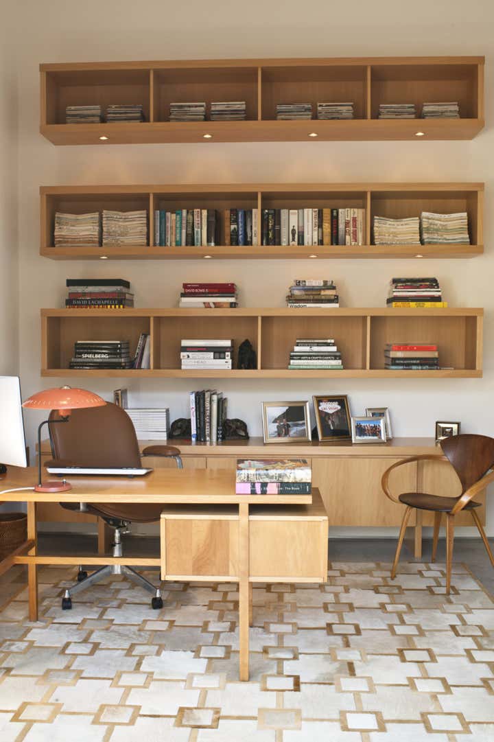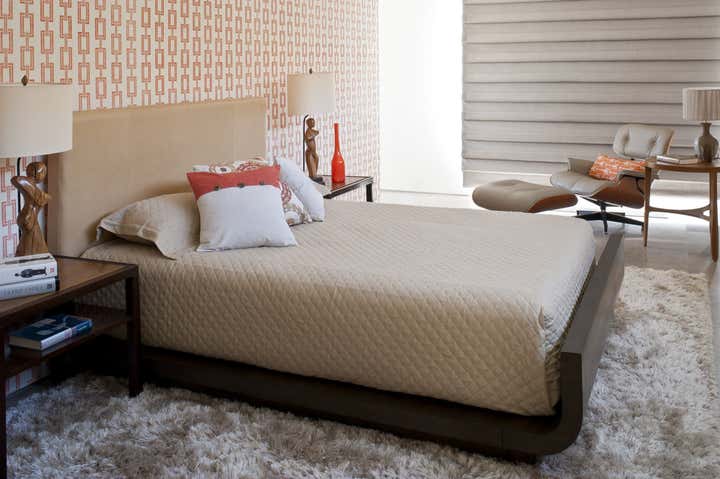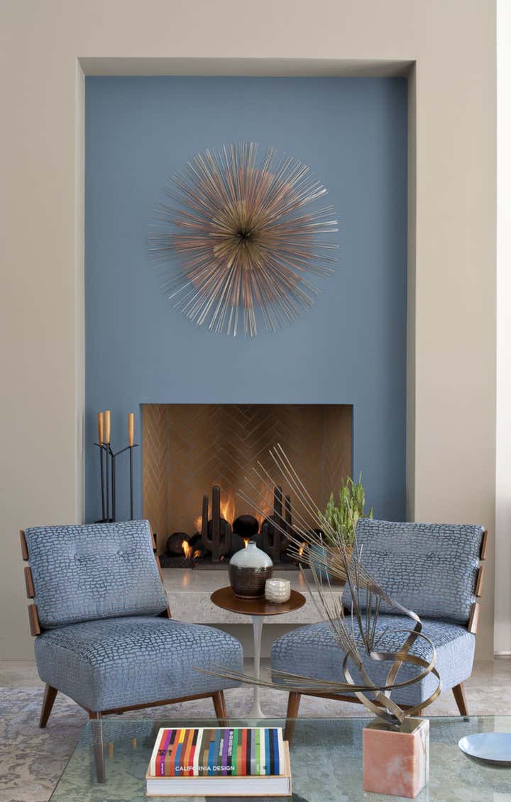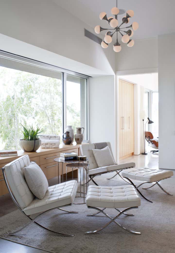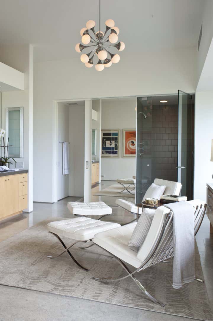 This mid century project features a blend of vintage and contemporary furnishings and showcases the owner s collection of vintage movie posters. Interior design by Michael Ostrow of Grace Home Furnishings.