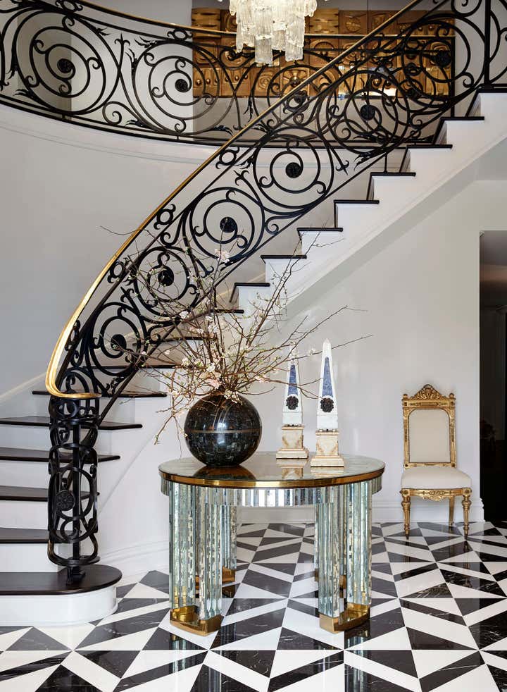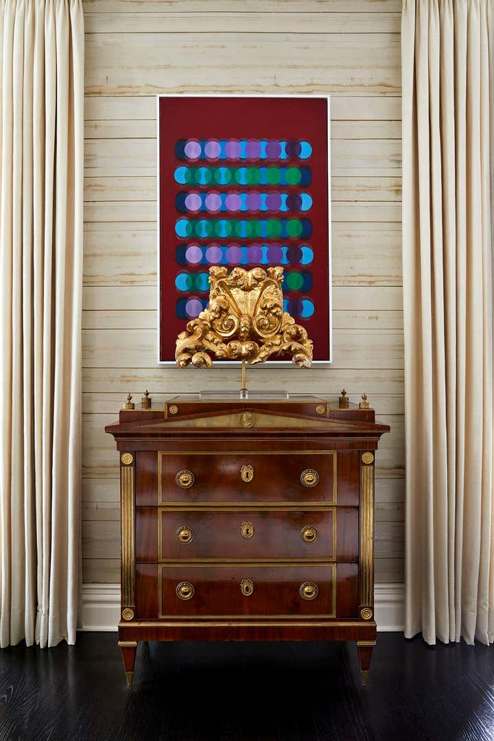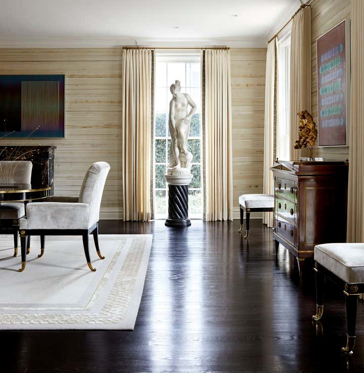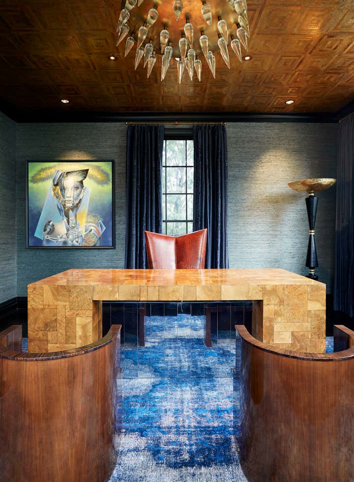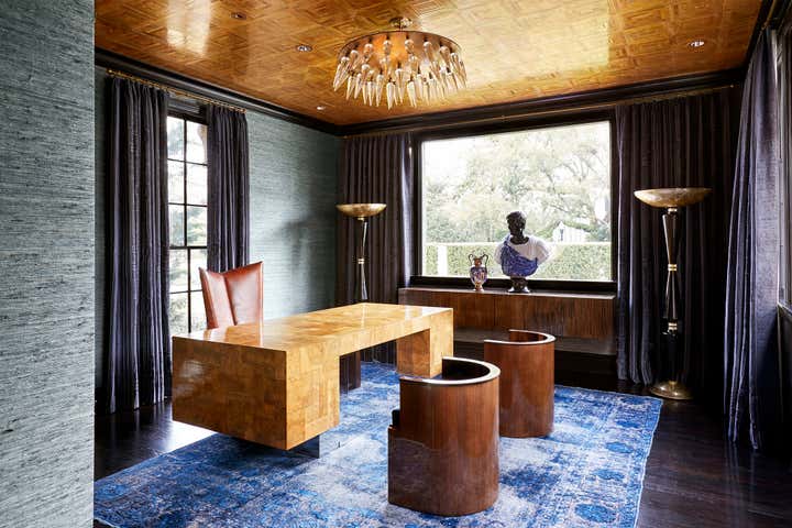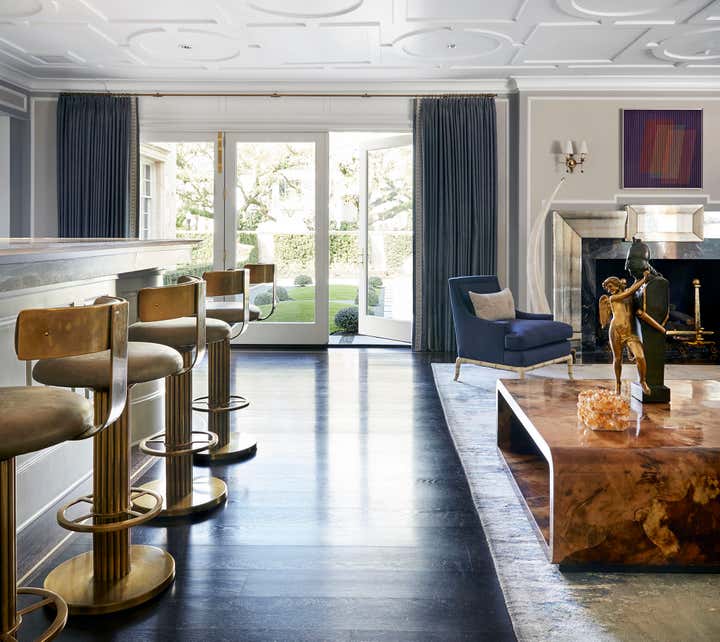 The Italian Renaissance style home located on the prestigious River Oaks Boulevard in Houston, Texas sat vacant for over 5 years. It seemed that no one could see the potential beyond its previous and badly dated remodel. For Dennis Brackeen Design Group the project become a complete 10,000 sq foot gut job and rehabilitation which the firm completed within an unprecedented 15 months. Upon completion the new owners moved in taking only their clothing. The couple were engaged to be married when they purchased the home and amid the construction and renovation also planned and celebrated their nuptials in a destination ceremony at Cal-A-Vie resort located in Vista, California. He, a self-made energy mogul and father of three adult children and she, a mother of two high schoolers and having impeccable taste worked closely with Brackeen who designed and created the perfect home to compliment their lifestyle. Almost every piece within the home was newly acquired and is pedigreed with vetted provenance from across the United States and Europe. The collection includes period antique furnishings and pieces from contemporaries such as Andre Arbus, Gilbert Poillerat, Paul Evans, Milo Baughman, Karl Springer, Paul McCobb, Charles Hollis Jones, Tommy Parzinger, Nanna Ditzel, Maison Jansen, Bagues, Maison Charles and more. Modern artisans include Callidus Guild, Azadeh Shladovsky, John Himmel, Jean De Merry, Jane Hallworth, Maya Romanoff, Kelly Wearstler, and many others. The couples art collection includes works by Andy Warhol, Joan Miro, Carlos Cruz-Diez, Luis Tomasello, Michel Lablais and James Nares. Some of the furnishings came from Brackeen’s 9000 square foot retail store Moxie which houses the design firm’s offices, upholstery and paint divisions and an unprecedented collection of carefully selected furnishings from around the globe which he and fellow co-owners have amassed. All of the upholstered pieces were custom made in-house.