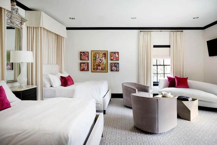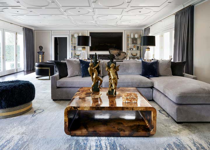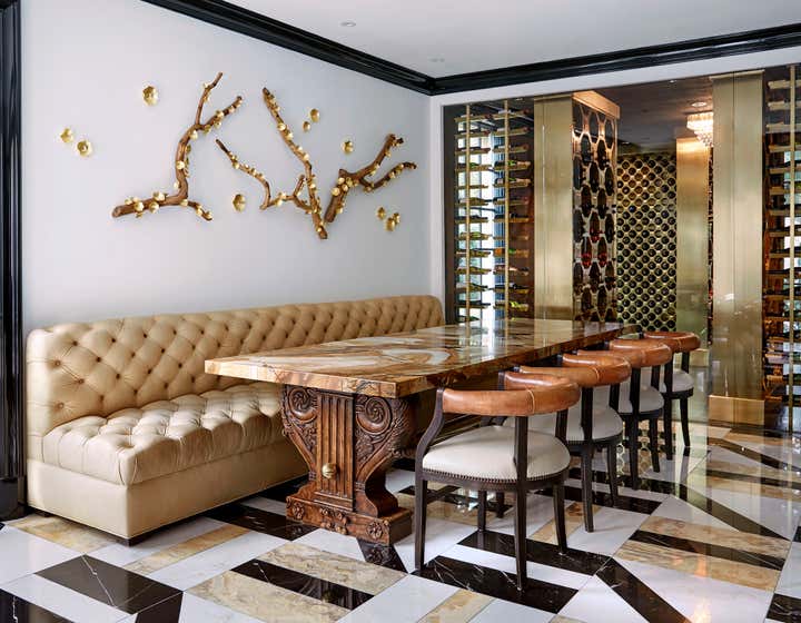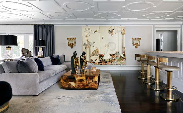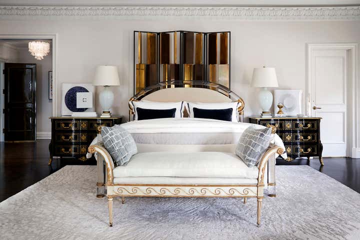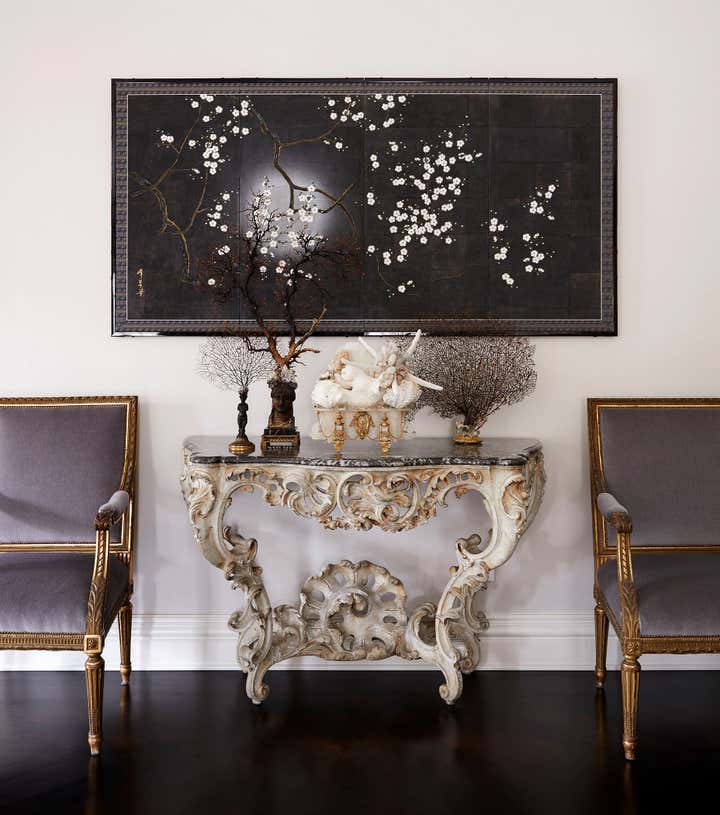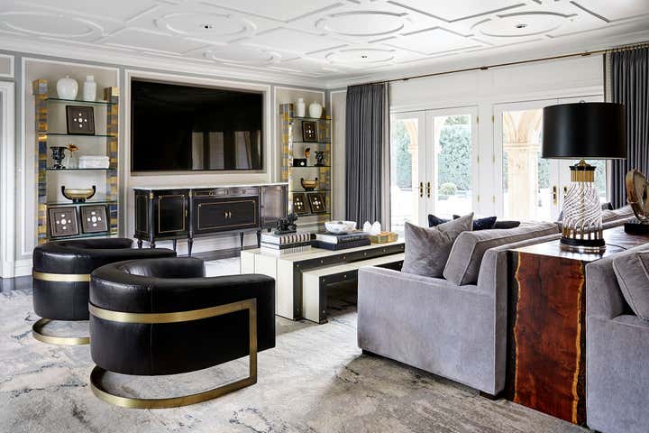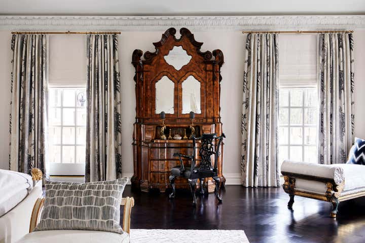 The Italian Renaissance style home located on the prestigious River Oaks Boulevard in Houston, Texas sat vacant for over 5 years. It seemed that no one could see the potential beyond its previous and badly dated remodel. For Dennis Brackeen Design Group the project become a complete 10,000 sq foot gut job and rehabilitation which the firm completed within an unprecedented 15 months. Upon completion the new owners moved in taking only their clothing. The couple were engaged to be married when they purchased the home and amid the construction and renovation also planned and celebrated their nuptials in a destination ceremony at Cal-A-Vie resort located in Vista, California. He, a self-made energy mogul and father of three adult children and she, a mother of two high schoolers and having impeccable taste worked closely with Brackeen who designed and created the perfect home to compliment their lifestyle. Almost every piece within the home was newly acquired and is pedigreed with vetted provenance from across the United States and Europe. The collection includes period antique furnishings and pieces from contemporaries such as Andre Arbus, Gilbert Poillerat, Paul Evans, Milo Baughman, Karl Springer, Paul McCobb, Charles Hollis Jones, Tommy Parzinger, Nanna Ditzel, Maison Jansen, Bagues, Maison Charles and more. Modern artisans include Callidus Guild, Azadeh Shladovsky, John Himmel, Jean De Merry, Jane Hallworth, Maya Romanoff, Kelly Wearstler, and many others. The couples art collection includes works by Andy Warhol, Joan Miro, Carlos Cruz-Diez, Luis Tomasello, Michel Lablais and James Nares. Some of the furnishings came from Brackeen’s 9000 square foot retail store Moxie which houses the design firm’s offices, upholstery and paint divisions and an unprecedented collection of carefully selected furnishings from around the globe which he and fellow co-owners have amassed. All of the upholstered pieces were custom made in-house.