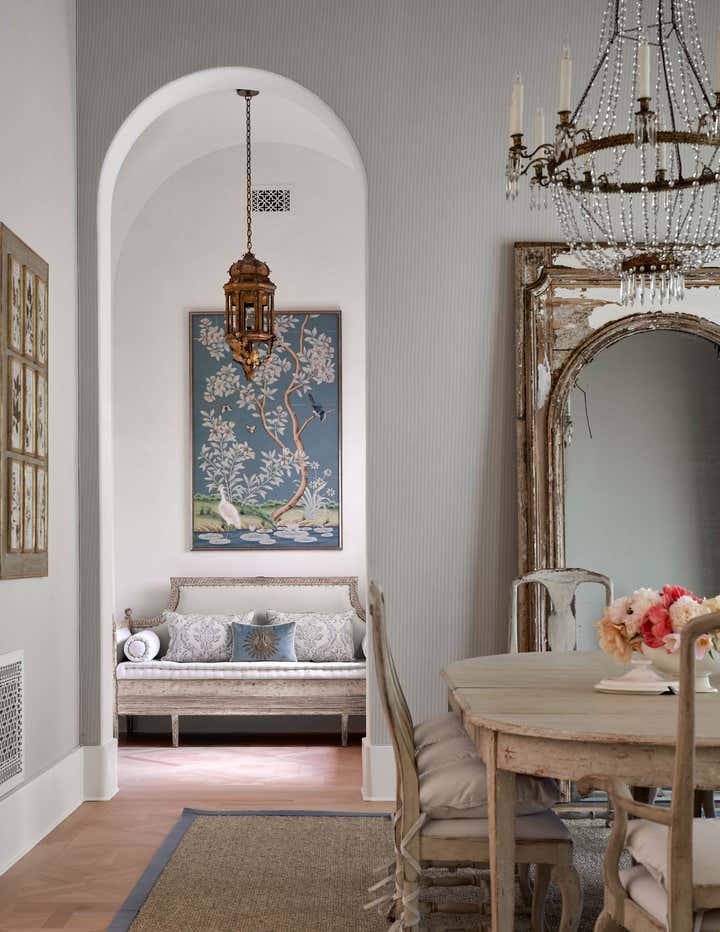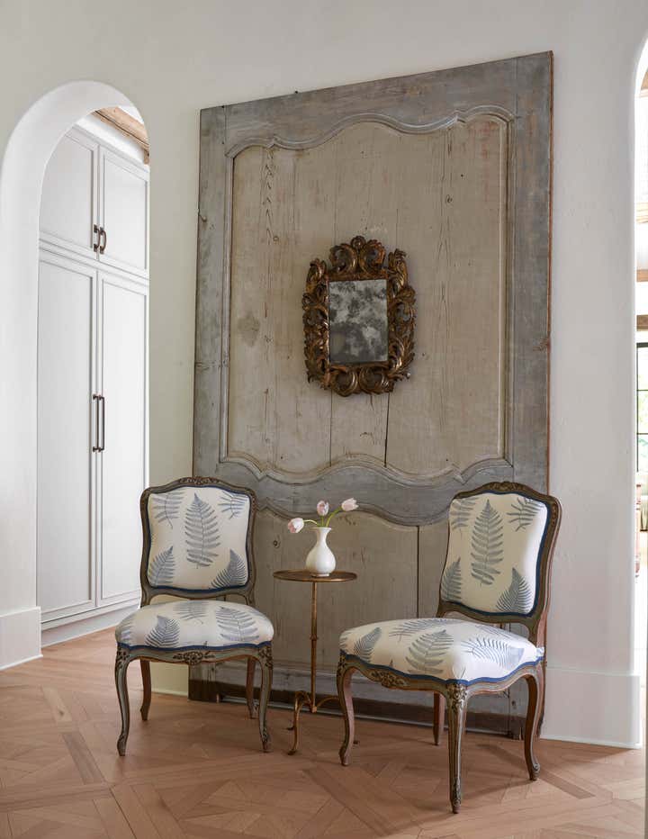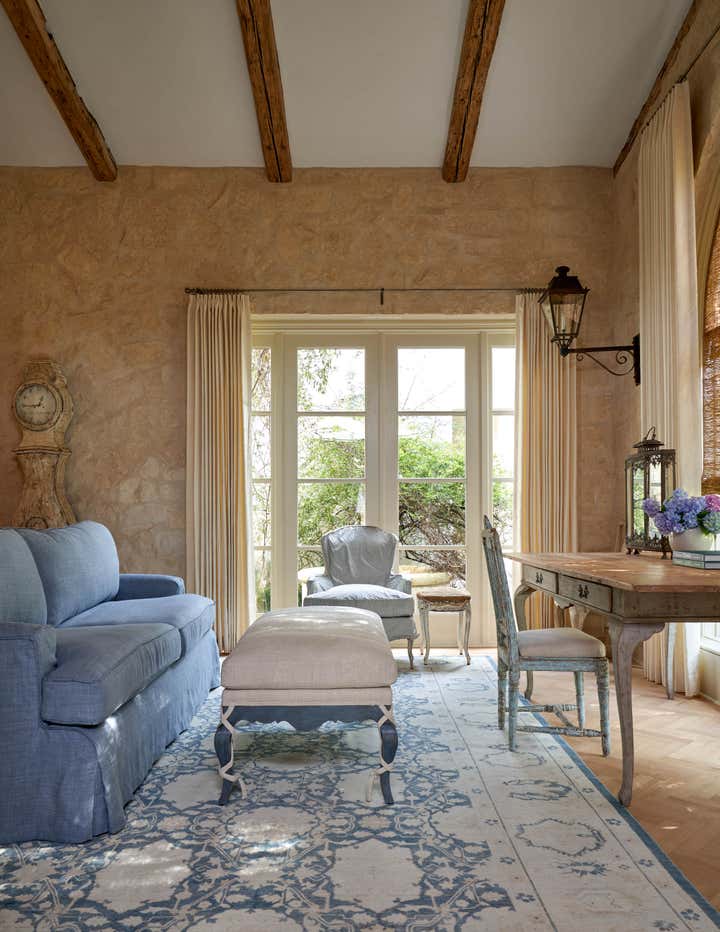 The Robledo Project was inspired in part by the client s love of Patina Farm s aesthetic, but also influenced by the client s love for Swedish antiques. This home is filled with one-of-a-kind pieces and marries neutral and blue tones for an elegant palette.