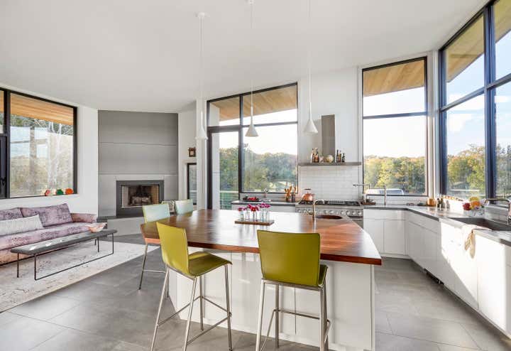 A tribute to modern architecture, designed by Lee Skolnick, this home resides on fourteen acres in Sag Harbor, NY. Kristen Elizabeth Design joined the team to advise on all interior design elements from surfaces to furnishings and create a modern, minimal vibe while maintaining a warmth that says home. We worked with the clients to blend treasured family heirlooms with styles that are trend forward, but timeless in design. Furnishings and textiles are neutral and softly hued and rooms are fluidly linked with old and new.