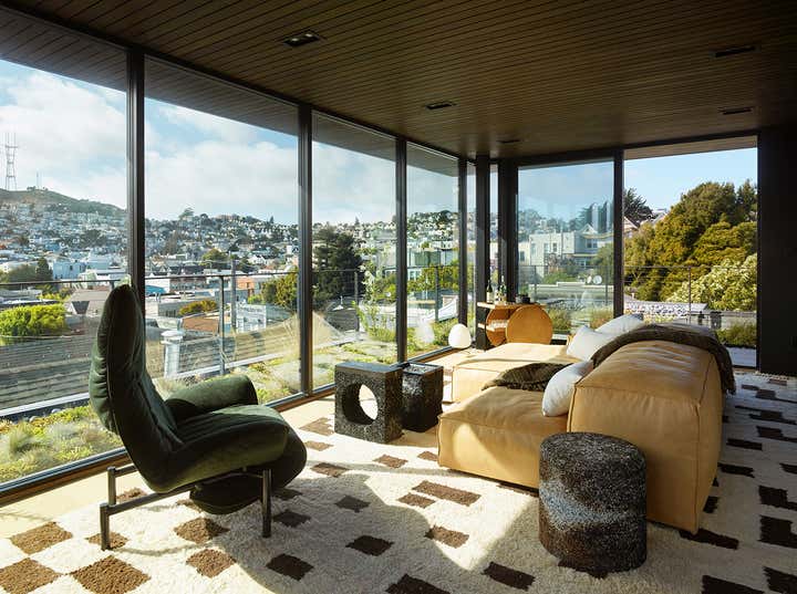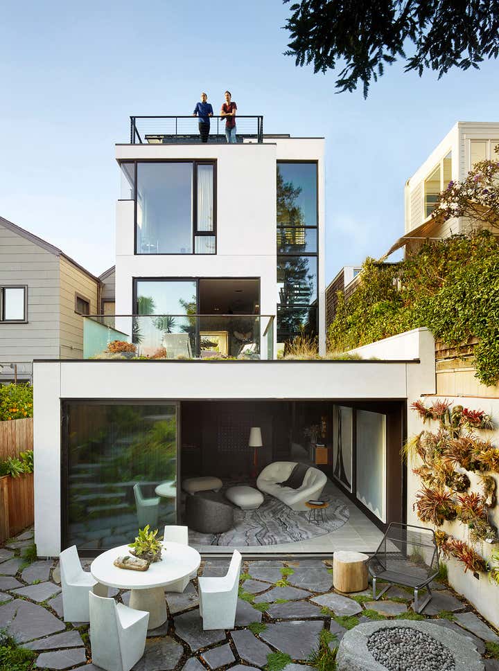A four story modern townhome set in the rolling hillside neighborhood of Noe Valley in the heart of San Francisco. Built for a young tech pioneer, the design is a playful combination of surrealist compositions of modern art and objects, eclectic vintage finds, and custom designs specifically for this home. Fresh colors, natural finishes, and organic shapes throughout identify these spaces as quintessentially California Modern .
