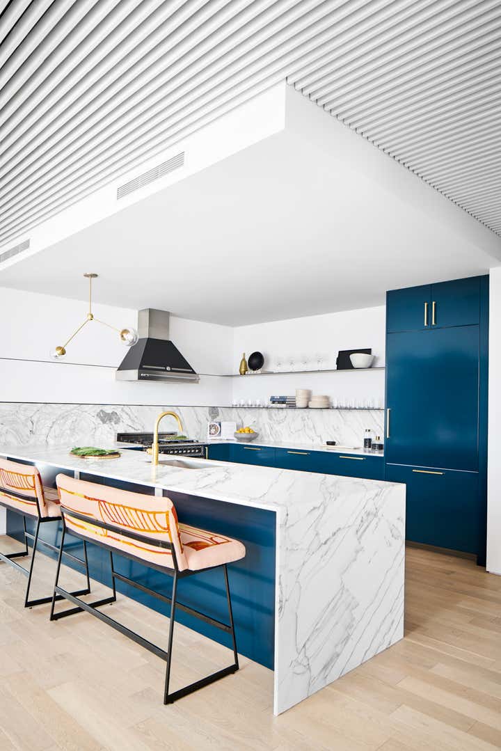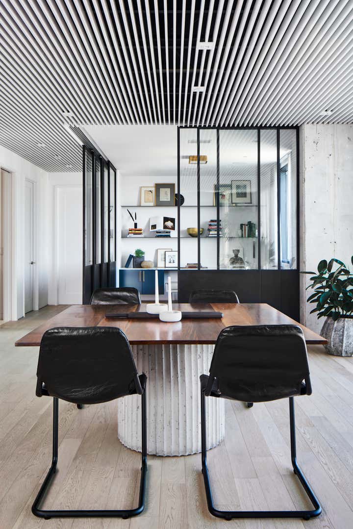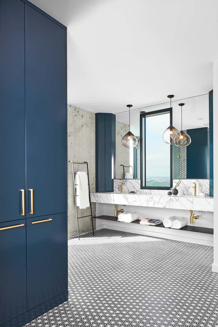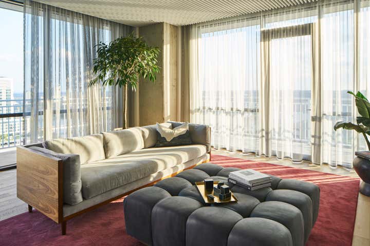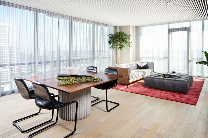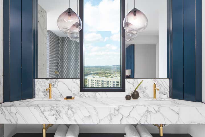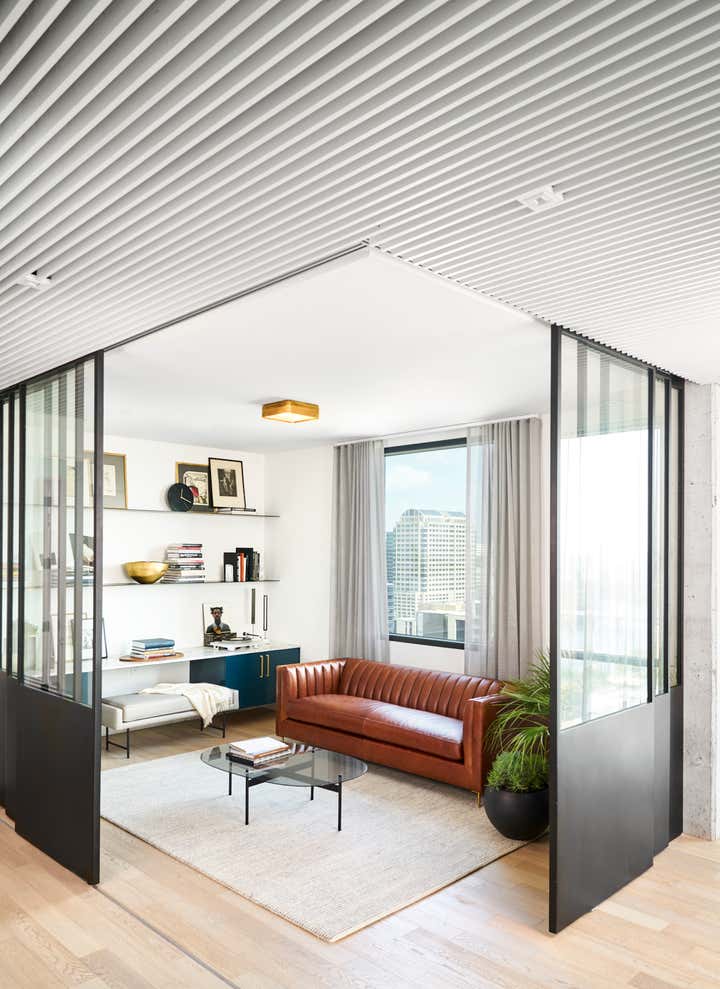 Designed by principal designer Sara Cukerbaum of SLIC Design, this residence in the Seaholm District of Austin, Texas, complements the industrial feel of the building’s exterior and articulates the style and personality of the owner. The modern and masculine architectural details are softened by lush textiles and delicate colors, creating a space that feels both edgy and warm.
