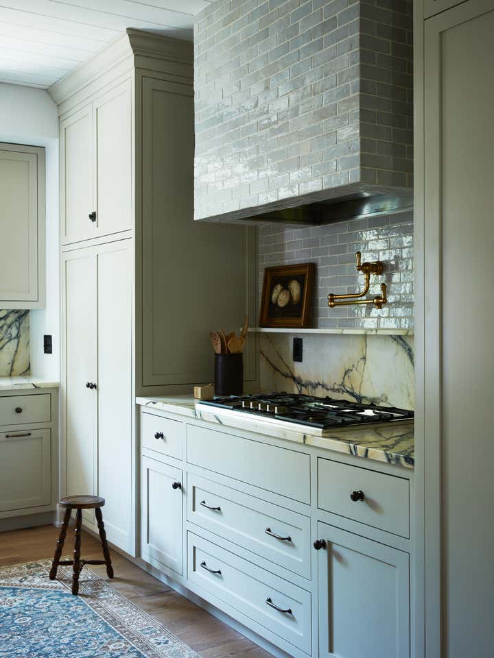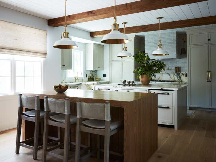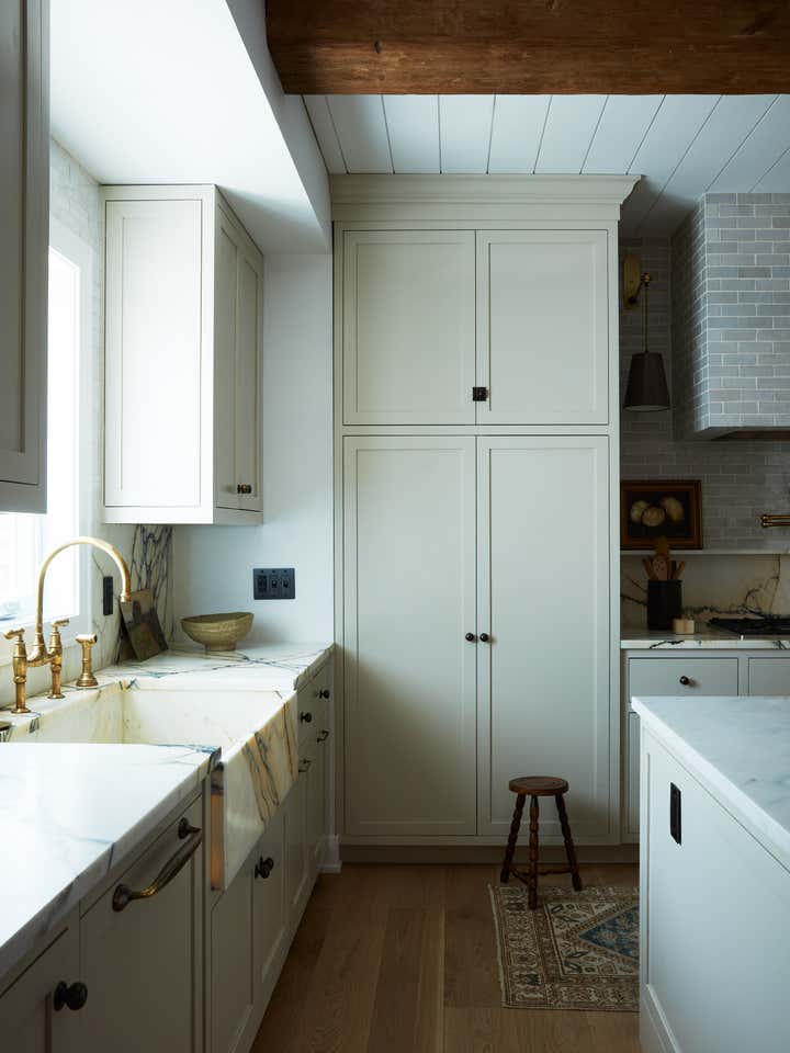 Our Somers project is a full renovation of a colonial home, built in 1998. Our client has a great eye for design and wanted to add bespoke character to her home, which was previously a builder special. This home combines high- end finishes and fixtures with unique vintage treasures. This two year, and still ongoing renovation included a fully redesigned chef s kitchen; complete with two islands, a formal dining room, foyer, mudroom, great room and some of their children s bedrooms and bathrooms in the first phase. Every detail was thoughtfully considered in the design process, and there is a beautiful juxtaposition of modern and classic elements throughout the home.
