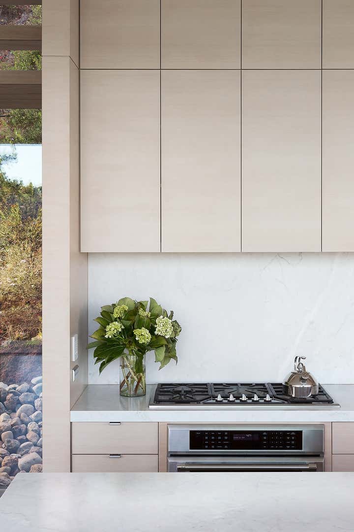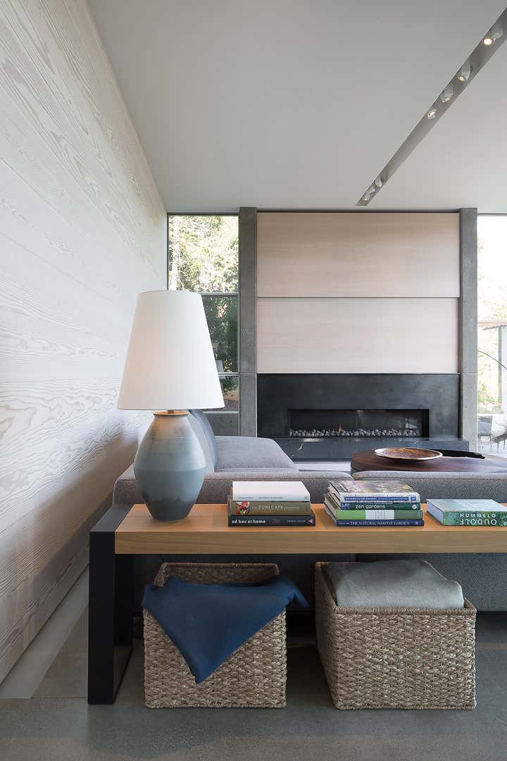 Inspired by the property s orchards, gardens and foliage, the interior design for this weekend home by Feldman Architects is a sophisticated layering of textures and color-rich hues within a serene glass box.